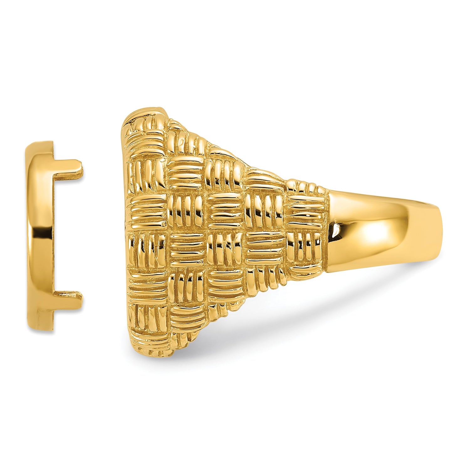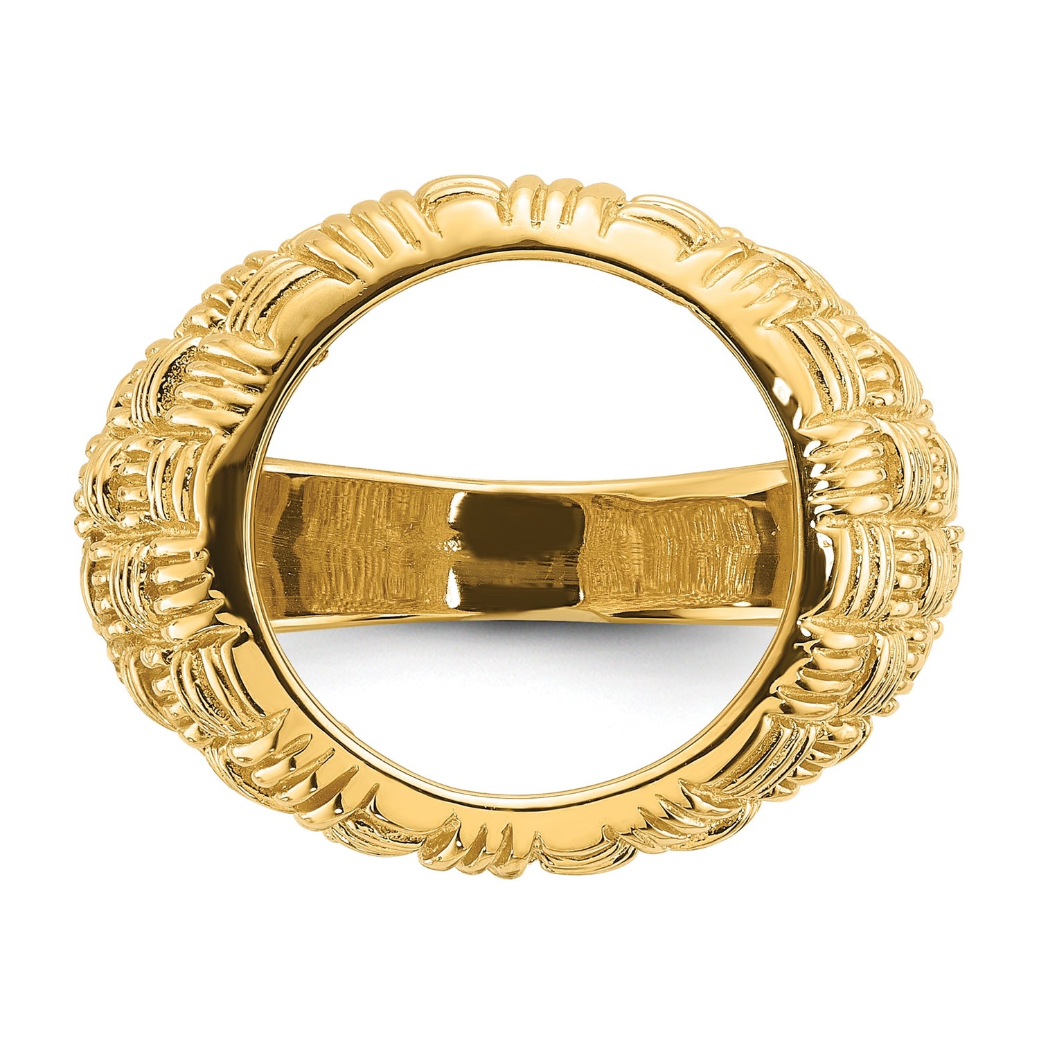 13 mm Coin Bezel Ring Prong Set Mens Polished Woven Design in 14k Yellow Gold