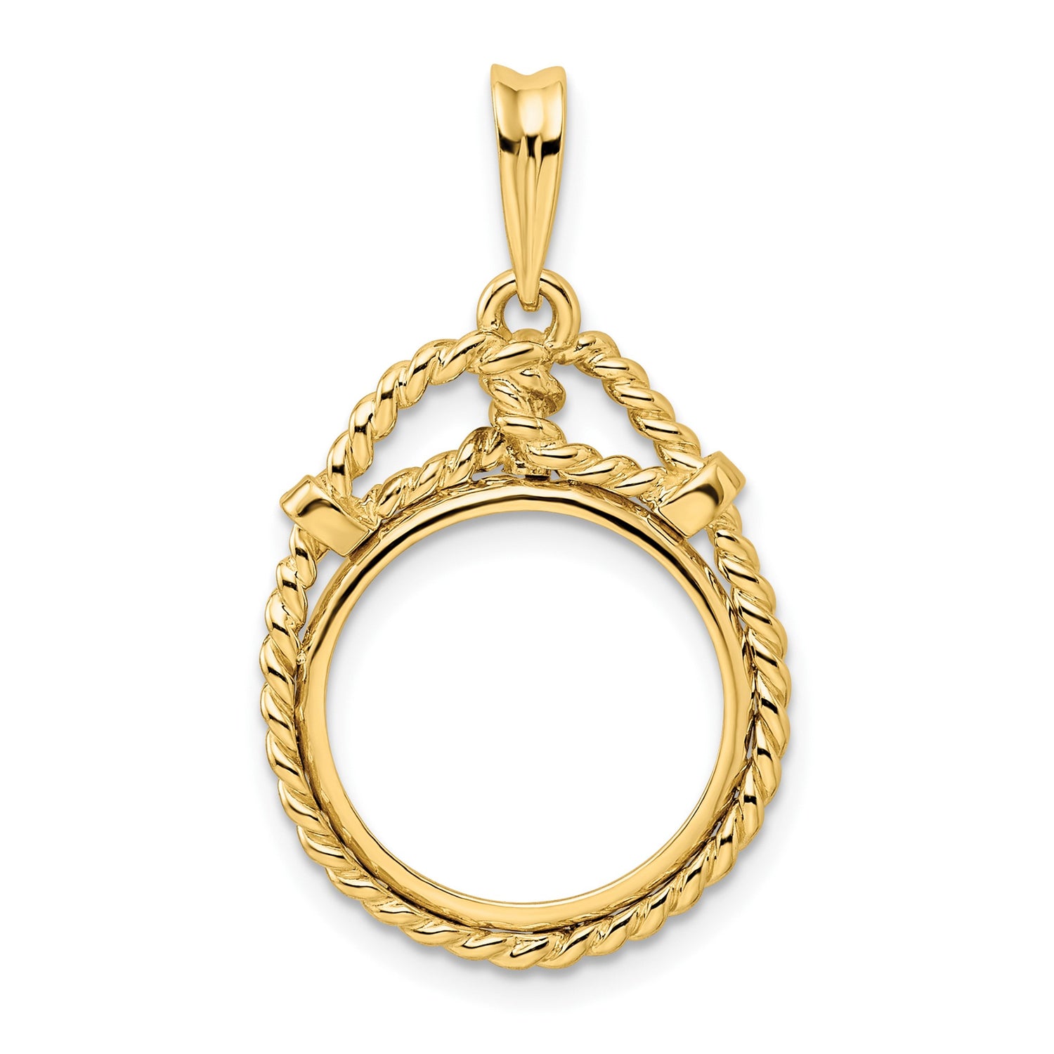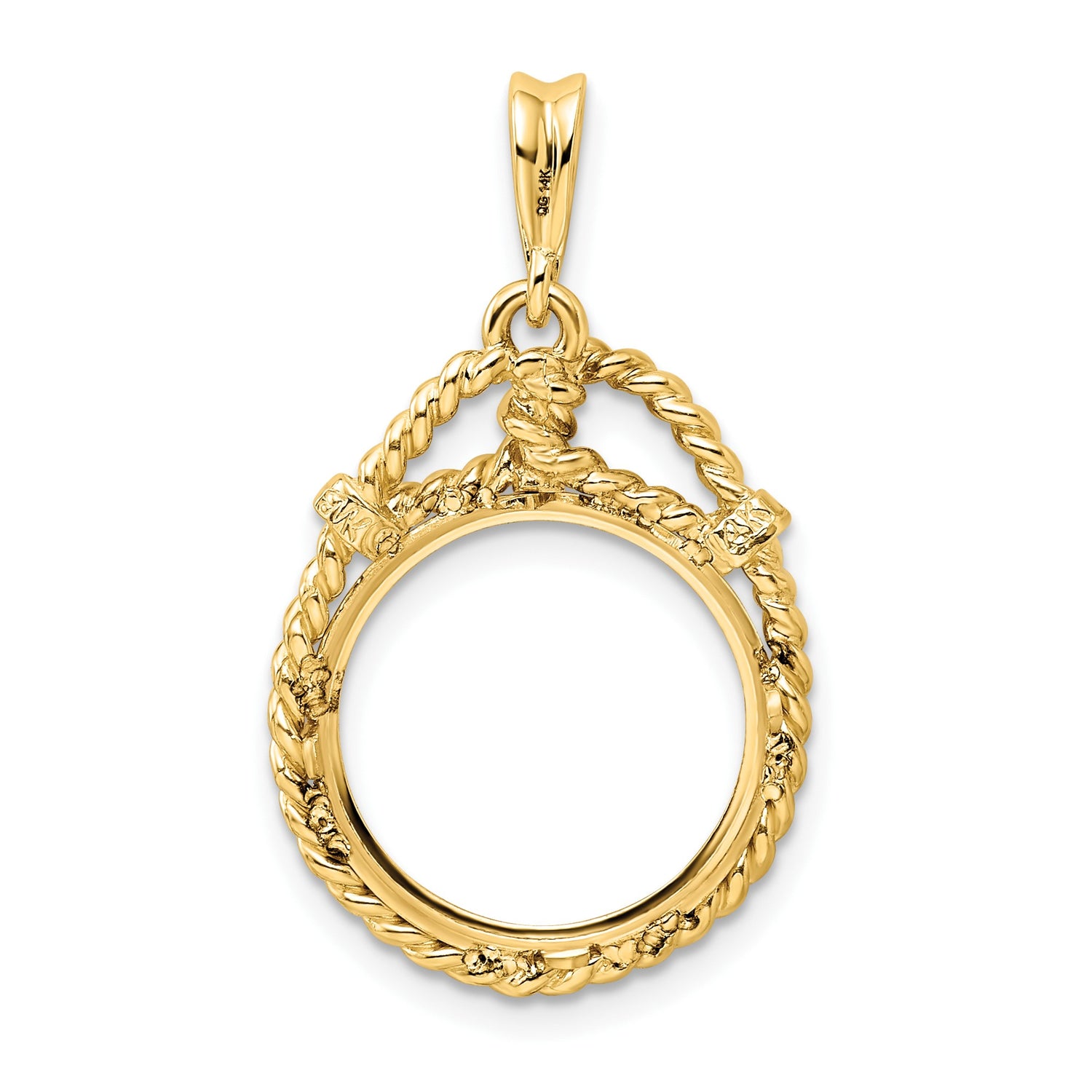 15 mm Coin Bezel Pendant Prong Set Western Rope in 14k Yellow Gold