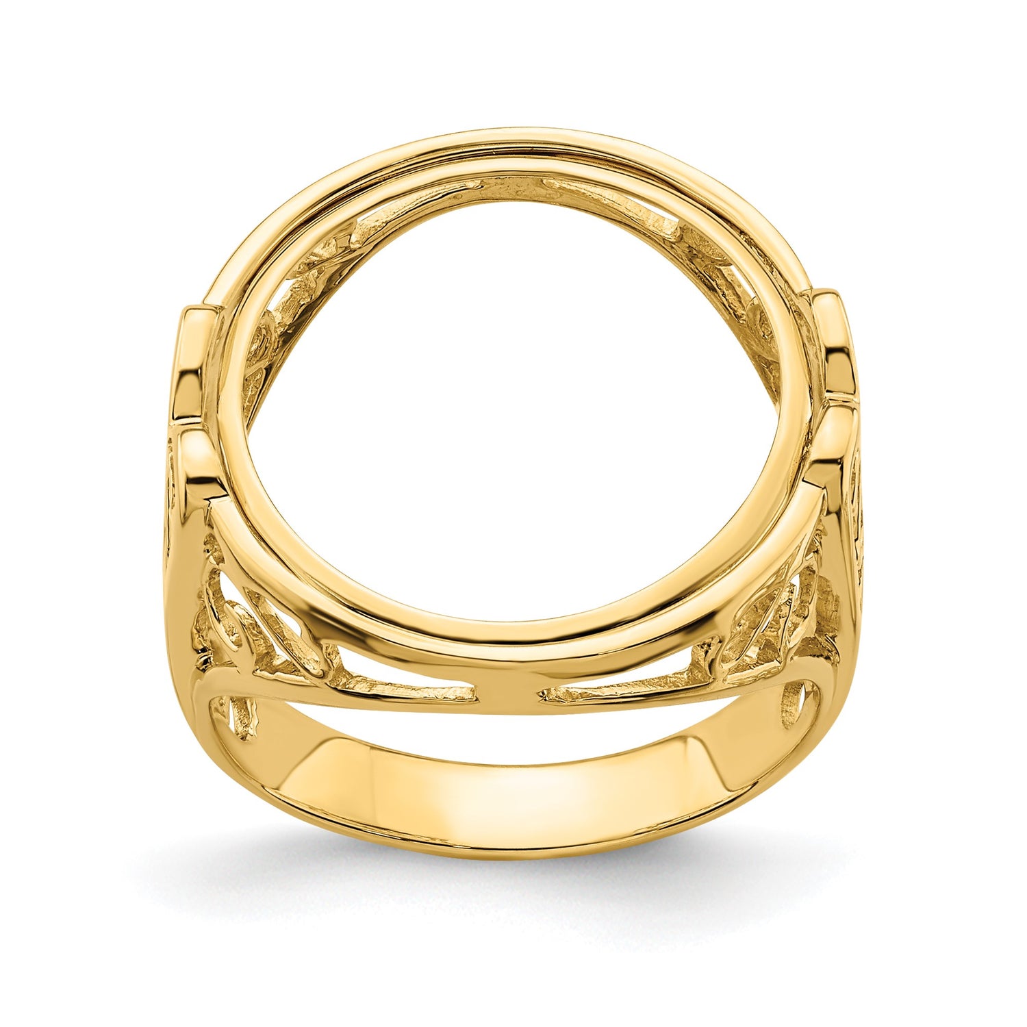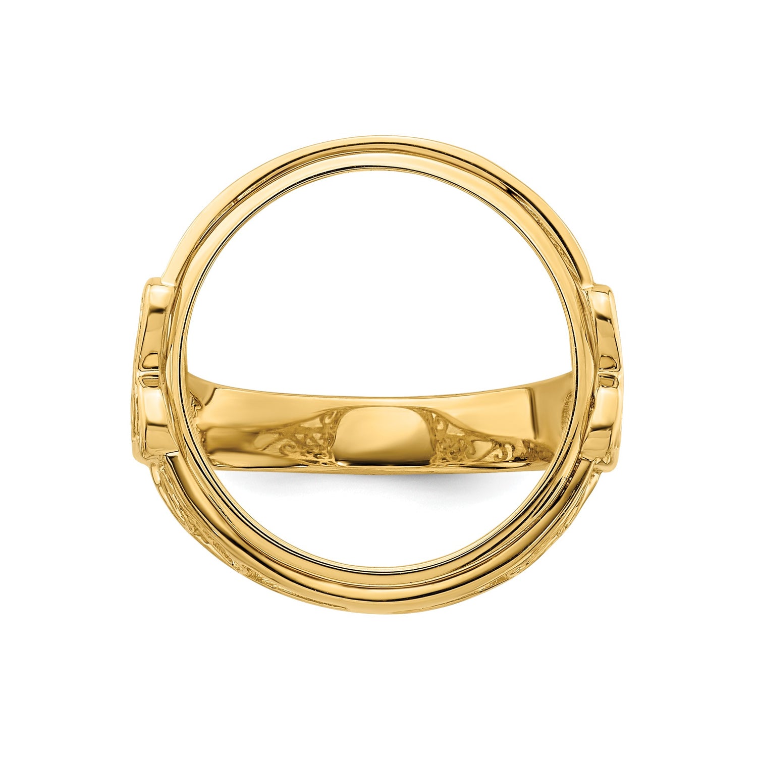15 mm Coin Bezel Ring Prong Set Polished Curled Filigree in 14k Yellow Gold