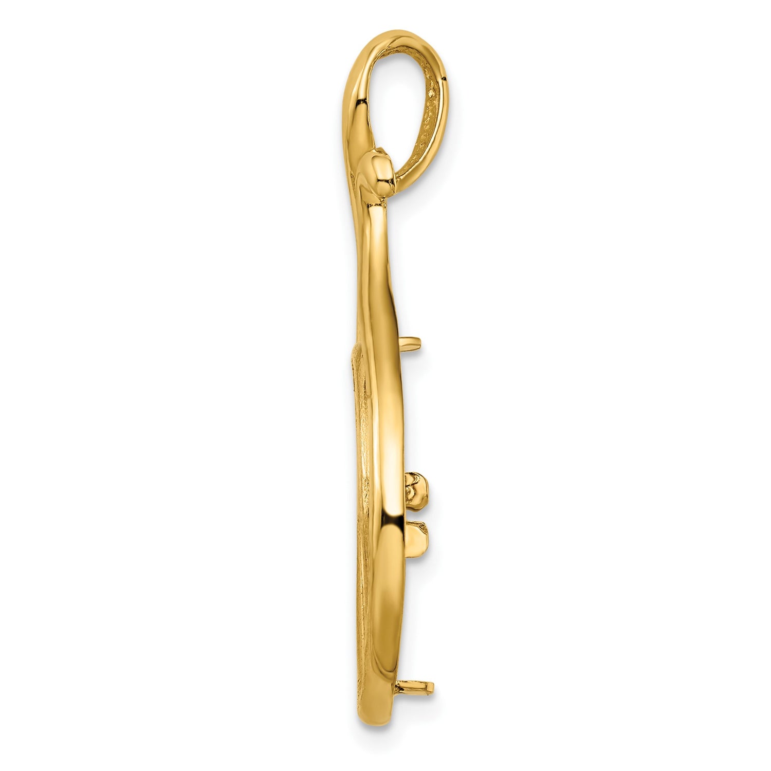 16.5 mm Coin Bezel Pendant Prong Set Curled Teardrop in 14k Yellow Gold