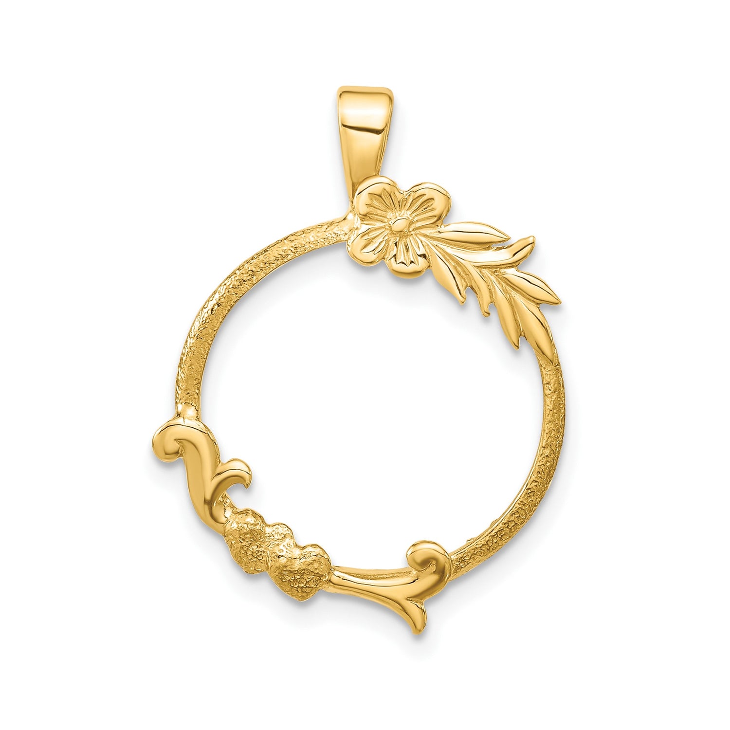 16.5 mm Coin Bezel Pendant Prong Set Flower and Hearts in 14k Yellow Gold