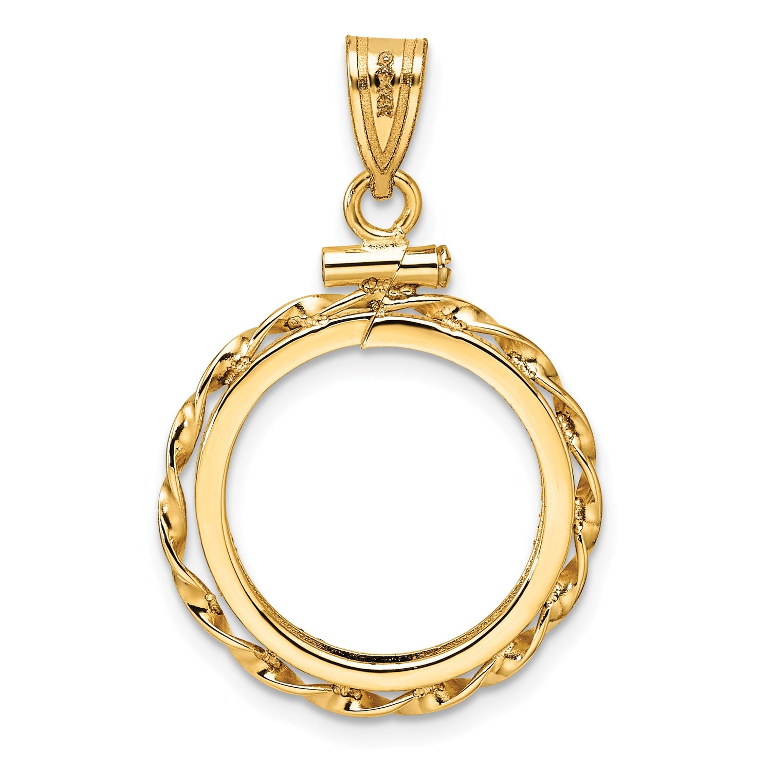 16.5 mm Coin Bezel Pendant Screw Top Diamond-Cut Twisted Ribbon 14k Yellow Gold