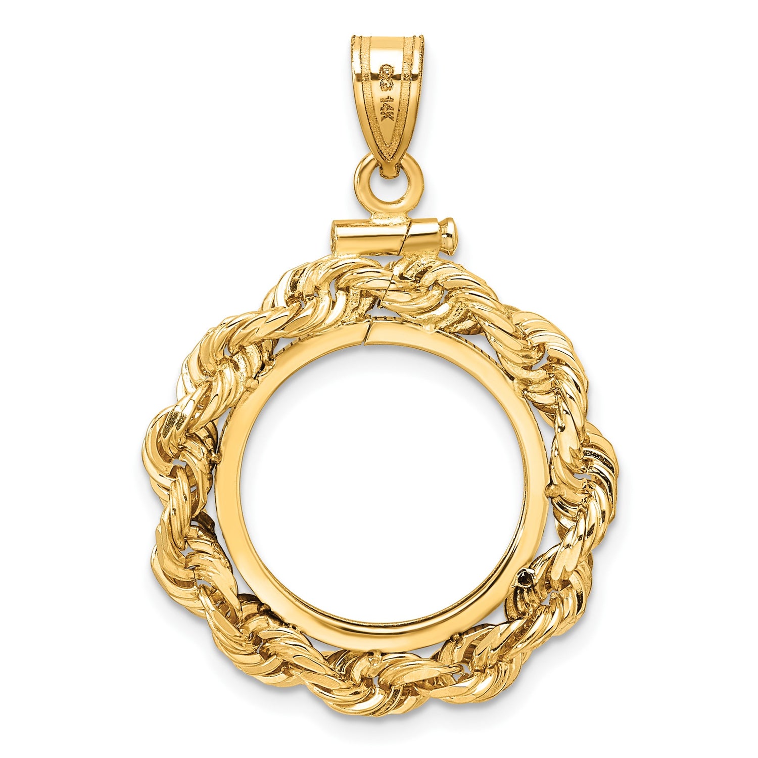 16.5 mm Coin Bezel Pendant Screw Top Large Knotted Rope in 14k Yellow Gold