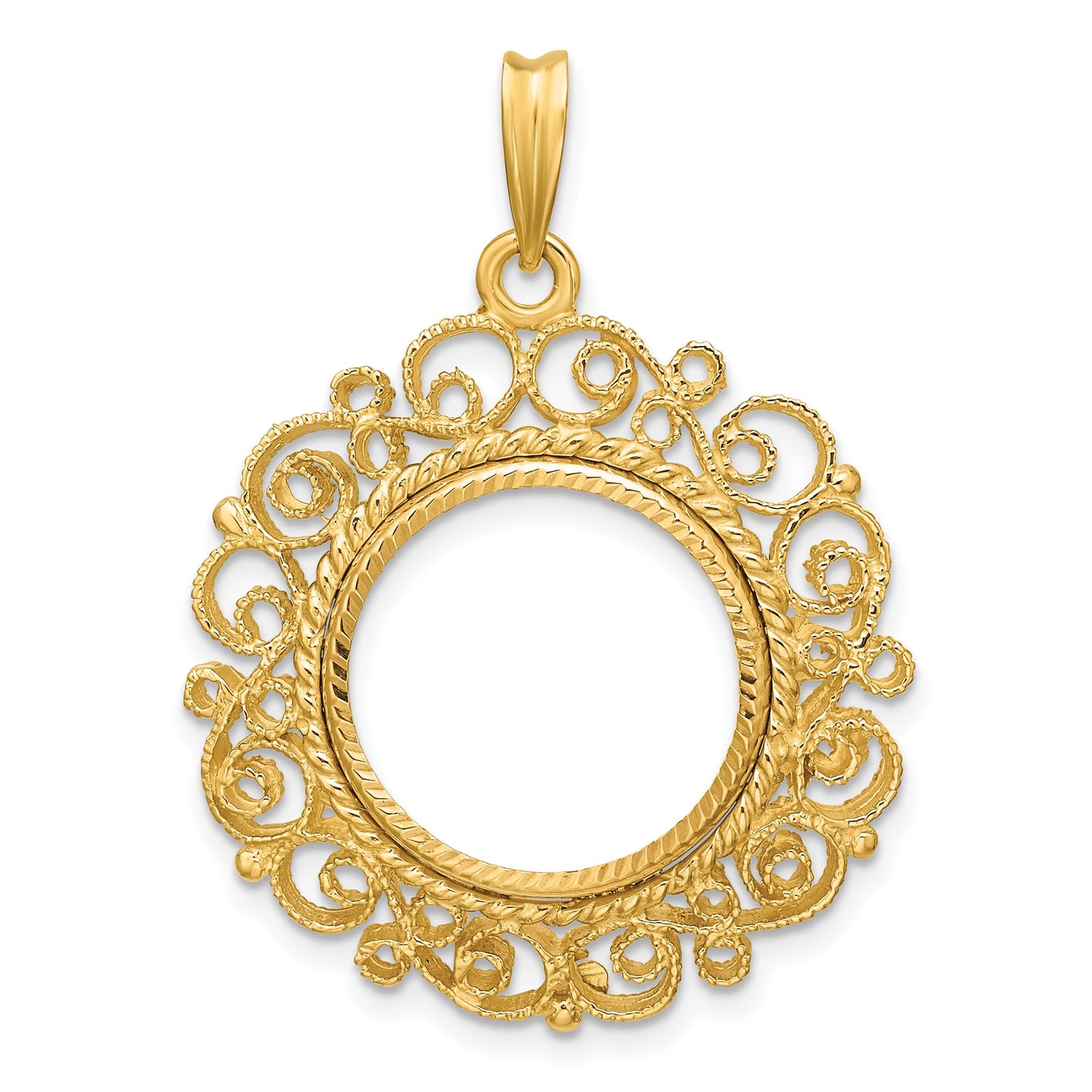 16 mm Coin Bezel Pendant Prong Set D/Cut Filigree Victorian in 14k Yellow Gold