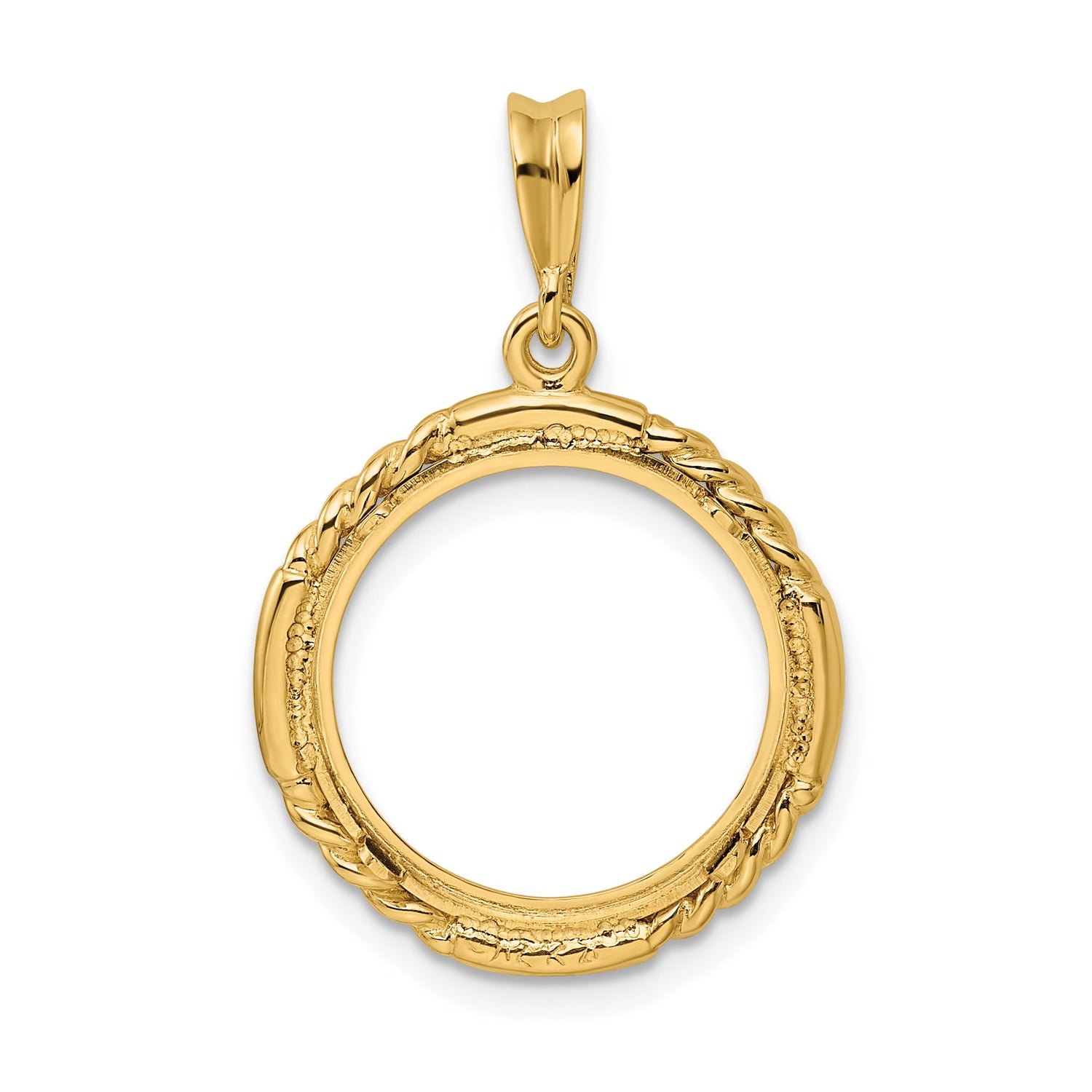 16 mm Coin Bezel Pendant Prong Set Quadruple Twist in 14k Yellow Gold