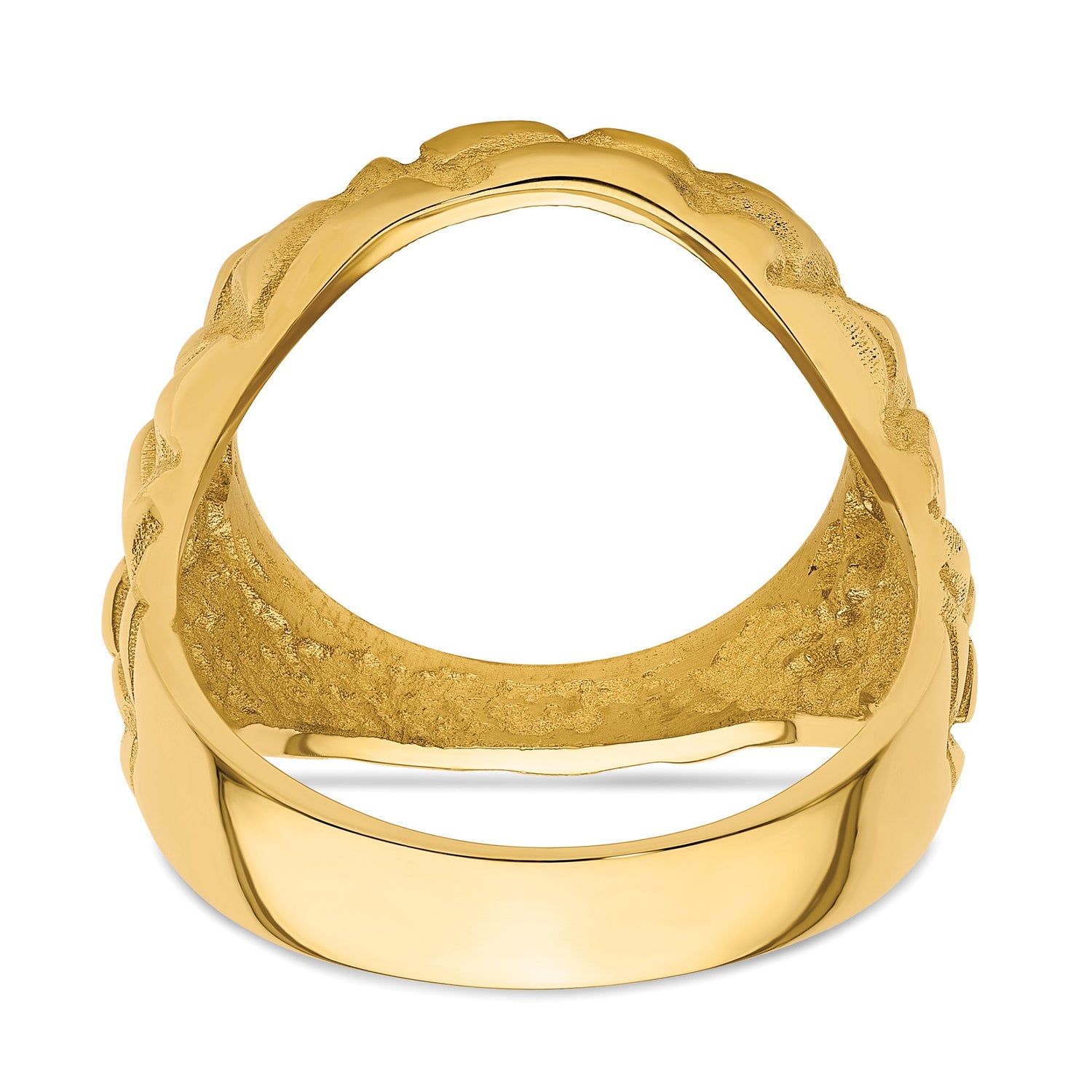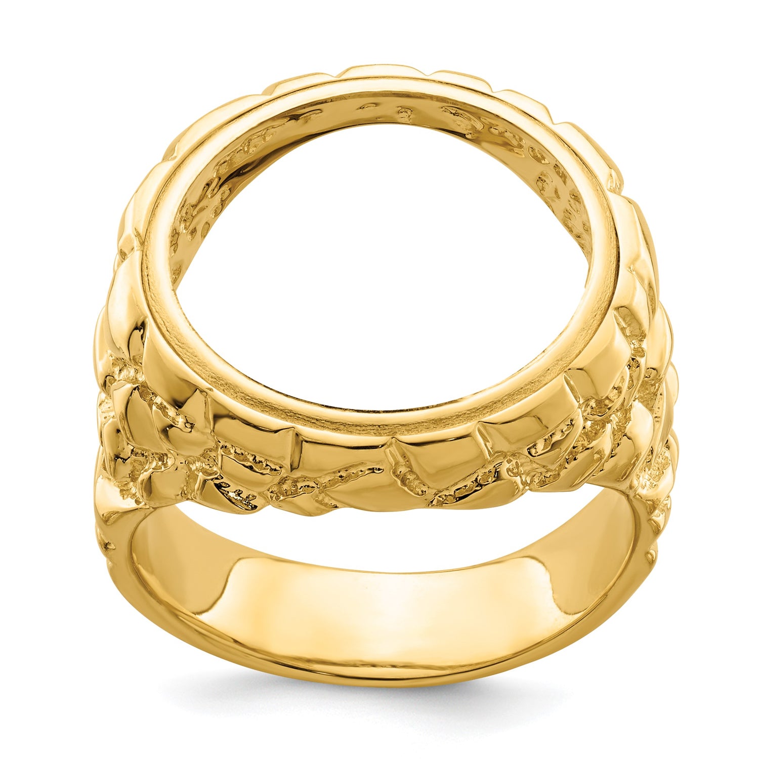16 mm Coin Bezel Ring Prong Set Mens Nugget in 14k Yellow Gold