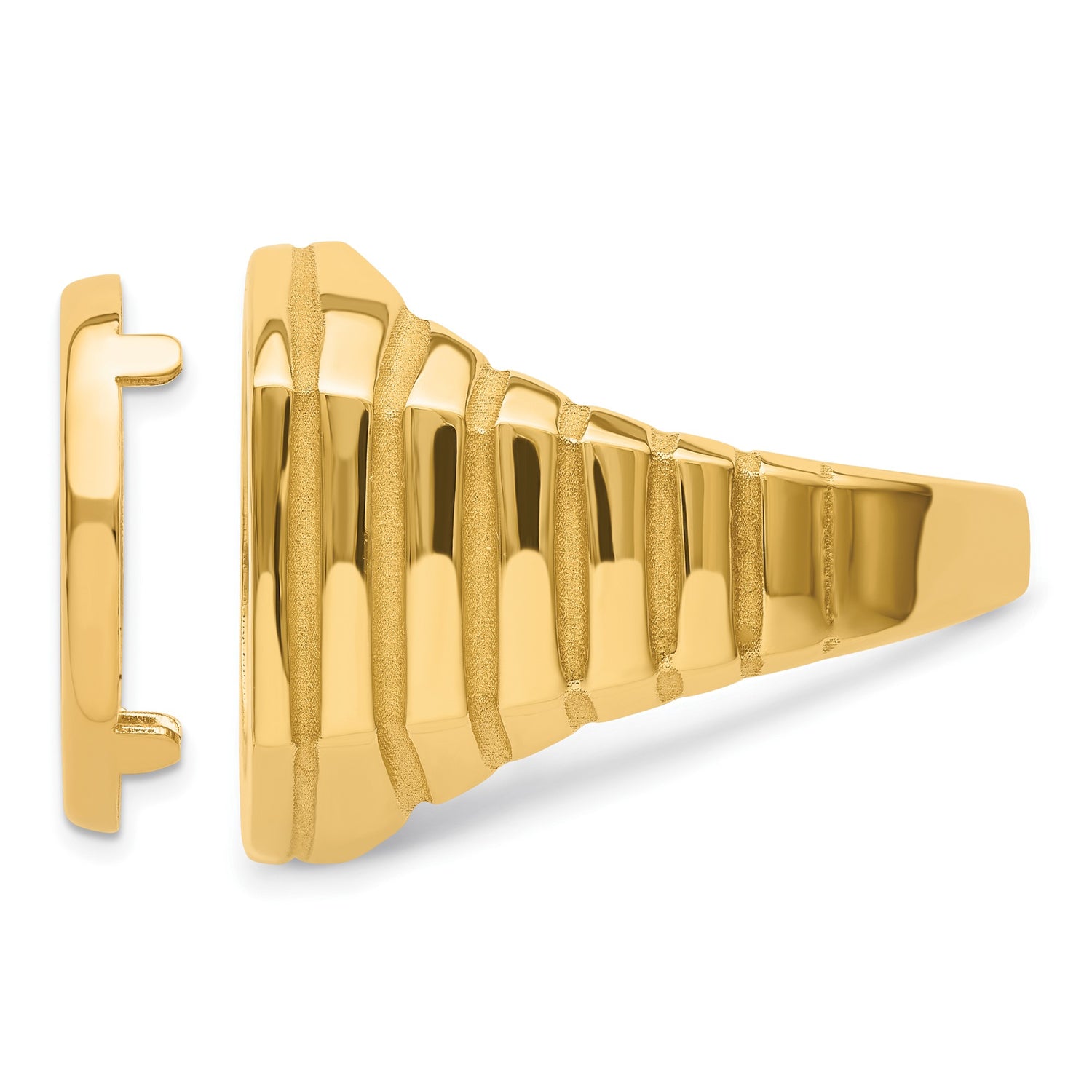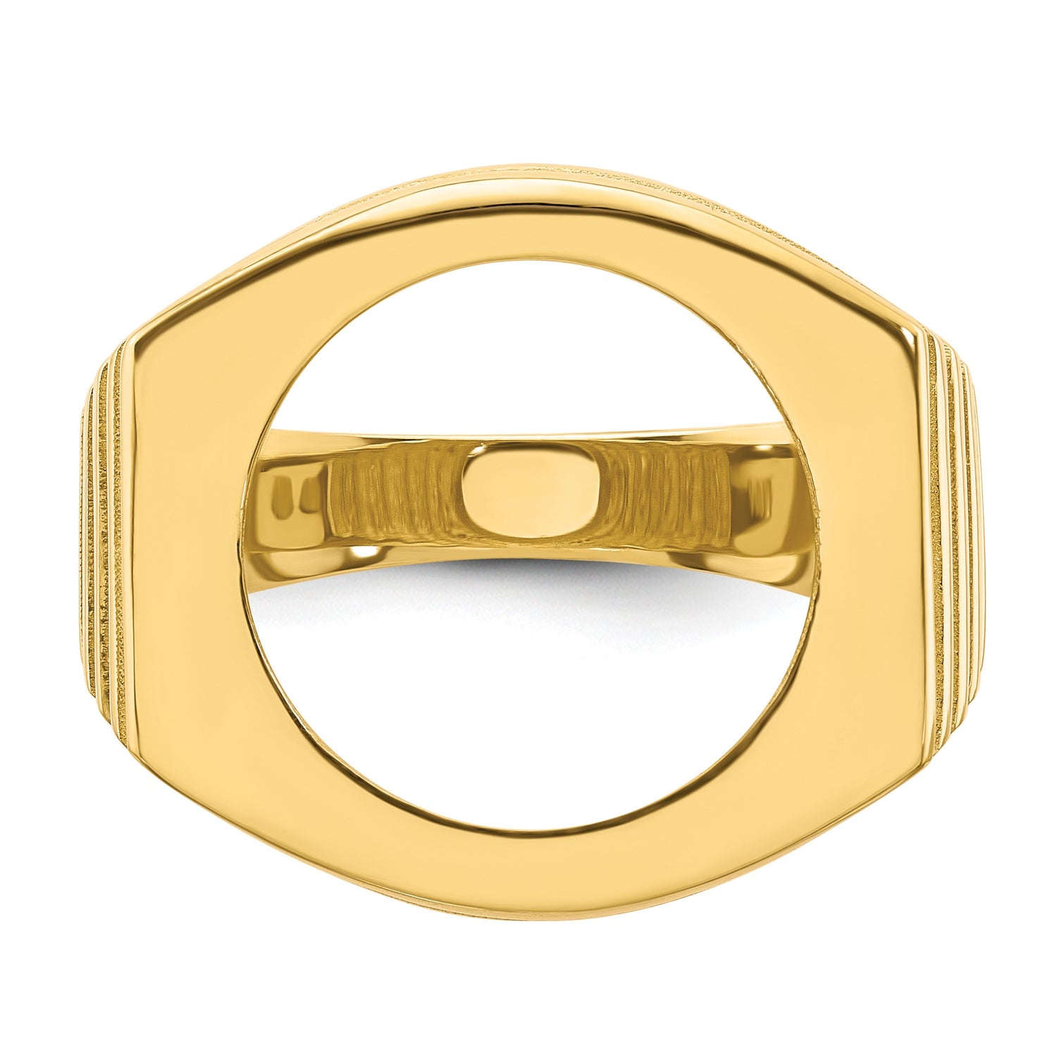 16 mm Coin Bezel Ring Prong Set Mens Square Ribbed in 14k Yellow Gold
