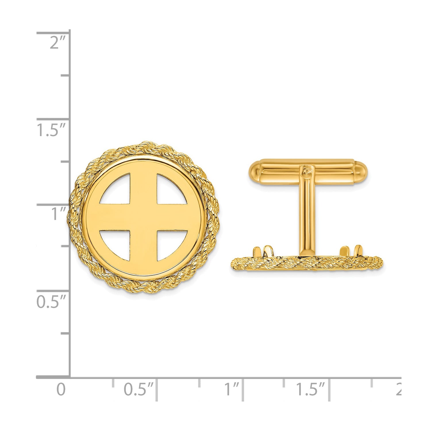 17.8 mm Coin Bezel Cuff Links Prong Set Polished Rope in 14k Yellow Gold
