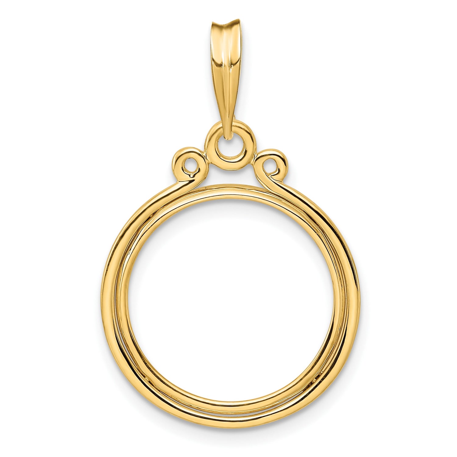 17.8 mm Coin Bezel Pendant Prong Set Circle Top in 14k Yellow Gold