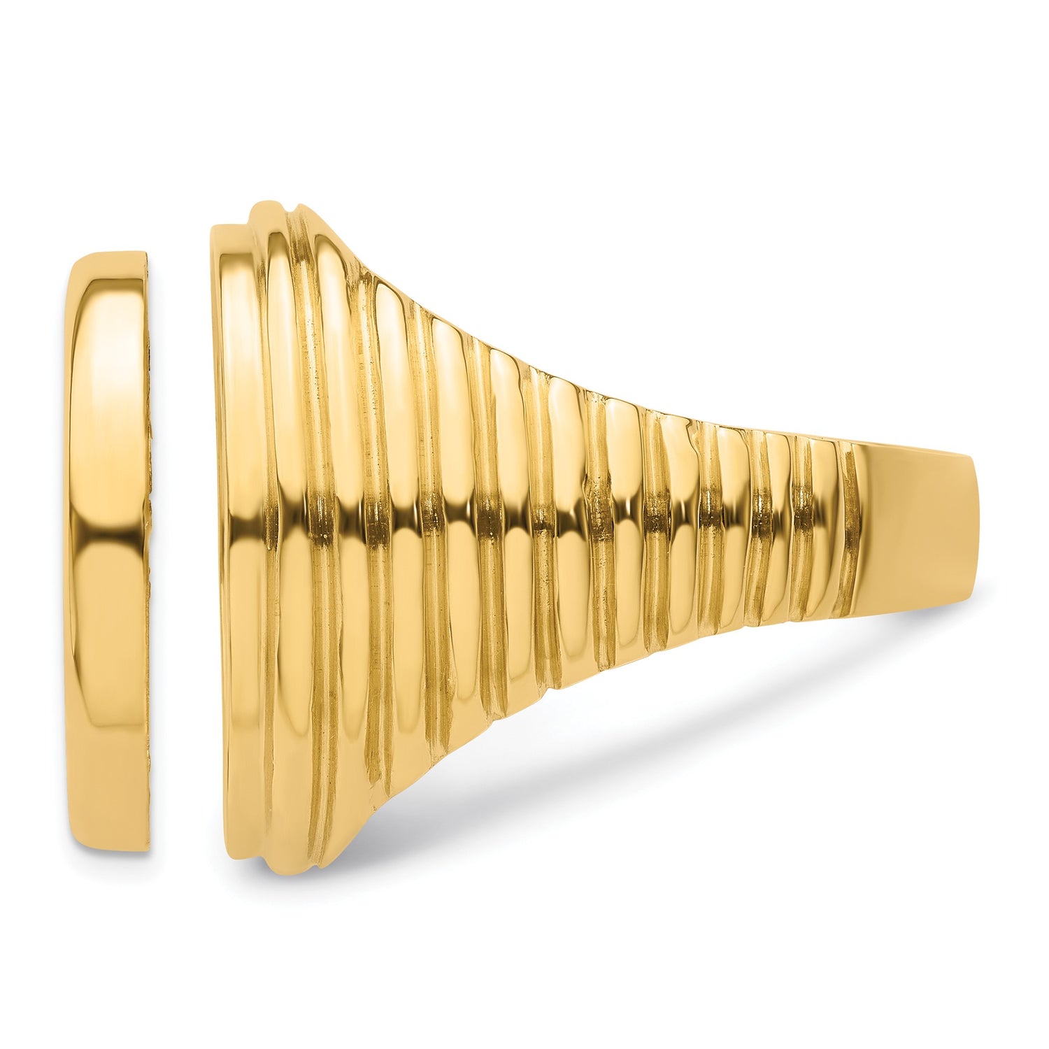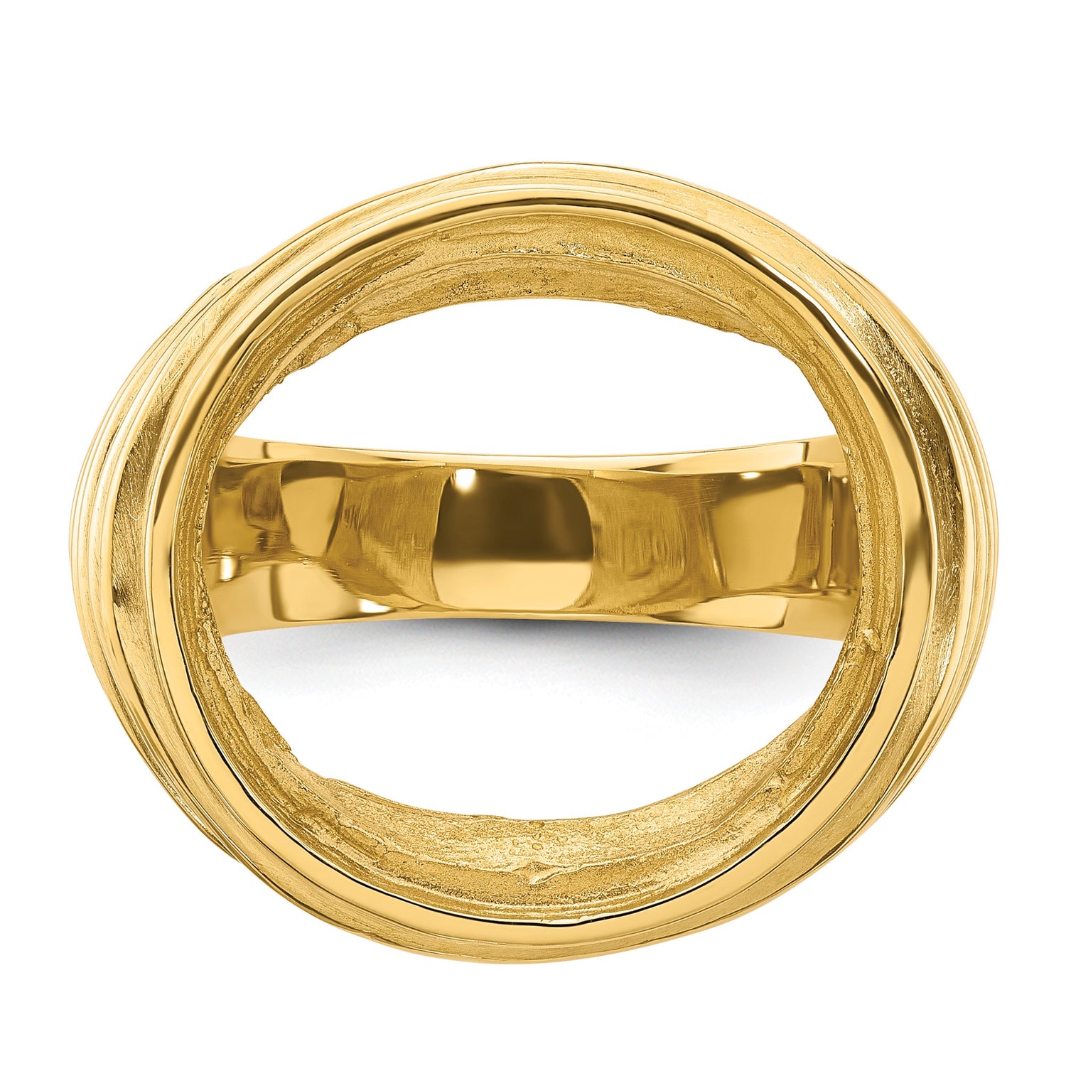 17.8 mm Coin Bezel Ring Prong Set Coil Design Comfort Fit in 14k Yellow Gold