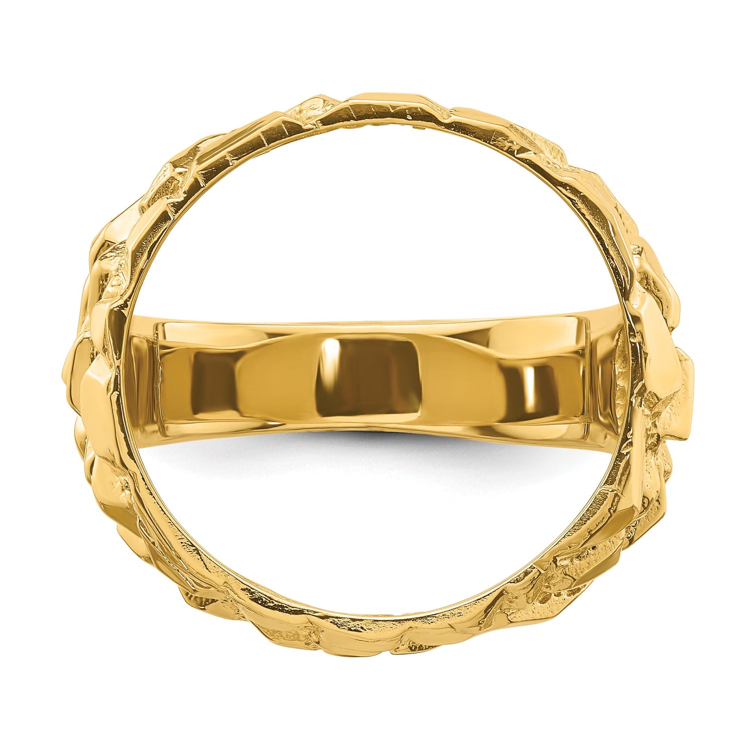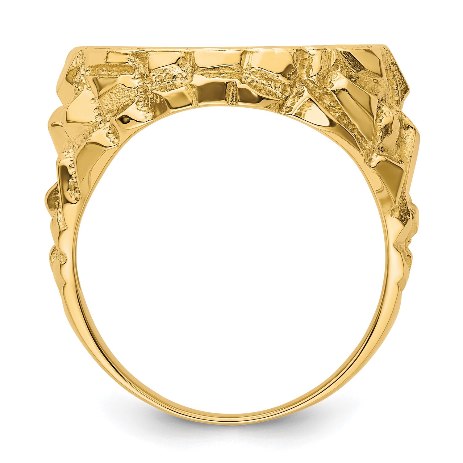 17.8 mm Coin Bezel Ring Prong Set Mens Nugget in 14k Yellow Gold