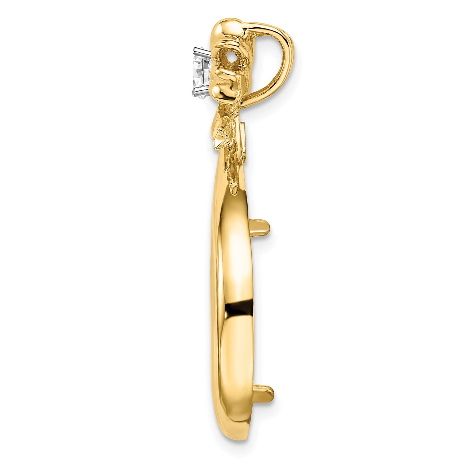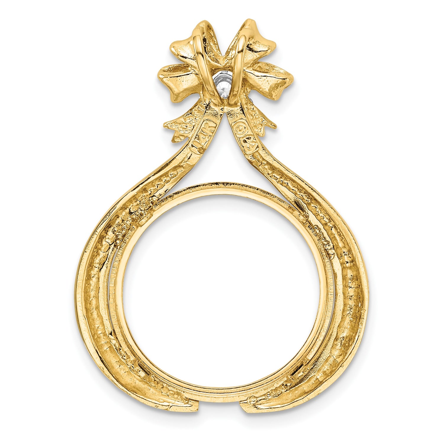 18 mm Coin Bezel Pendant Prong Set Diamond Teardrop Bow in 14k Multi-Tone Gold