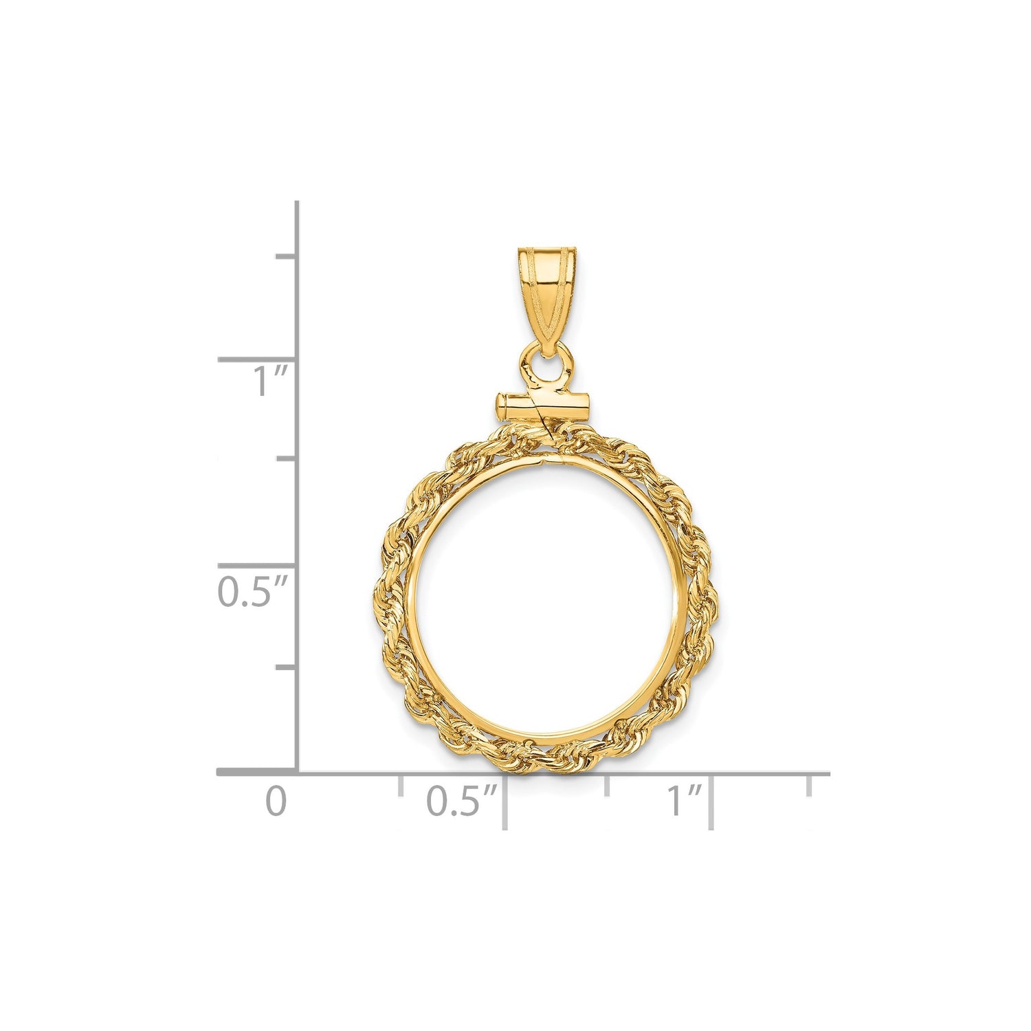 18 mm Coin Bezel Pendant Screw Top Petite Knotted Rope in 14k Yellow Gold