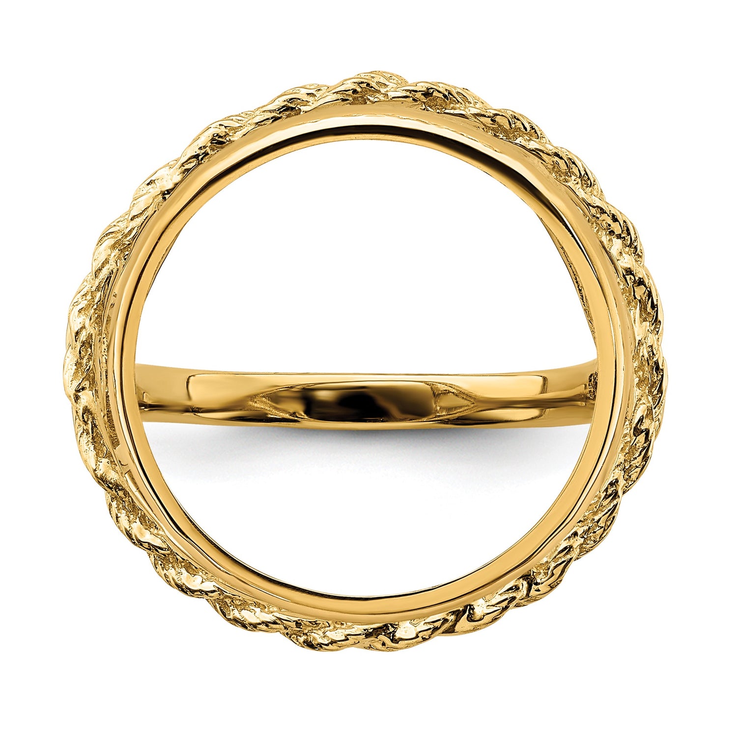 18 mm Coin Bezel Ring Prong Set Heart Sides Rope Edge in 14k Yellow Gold