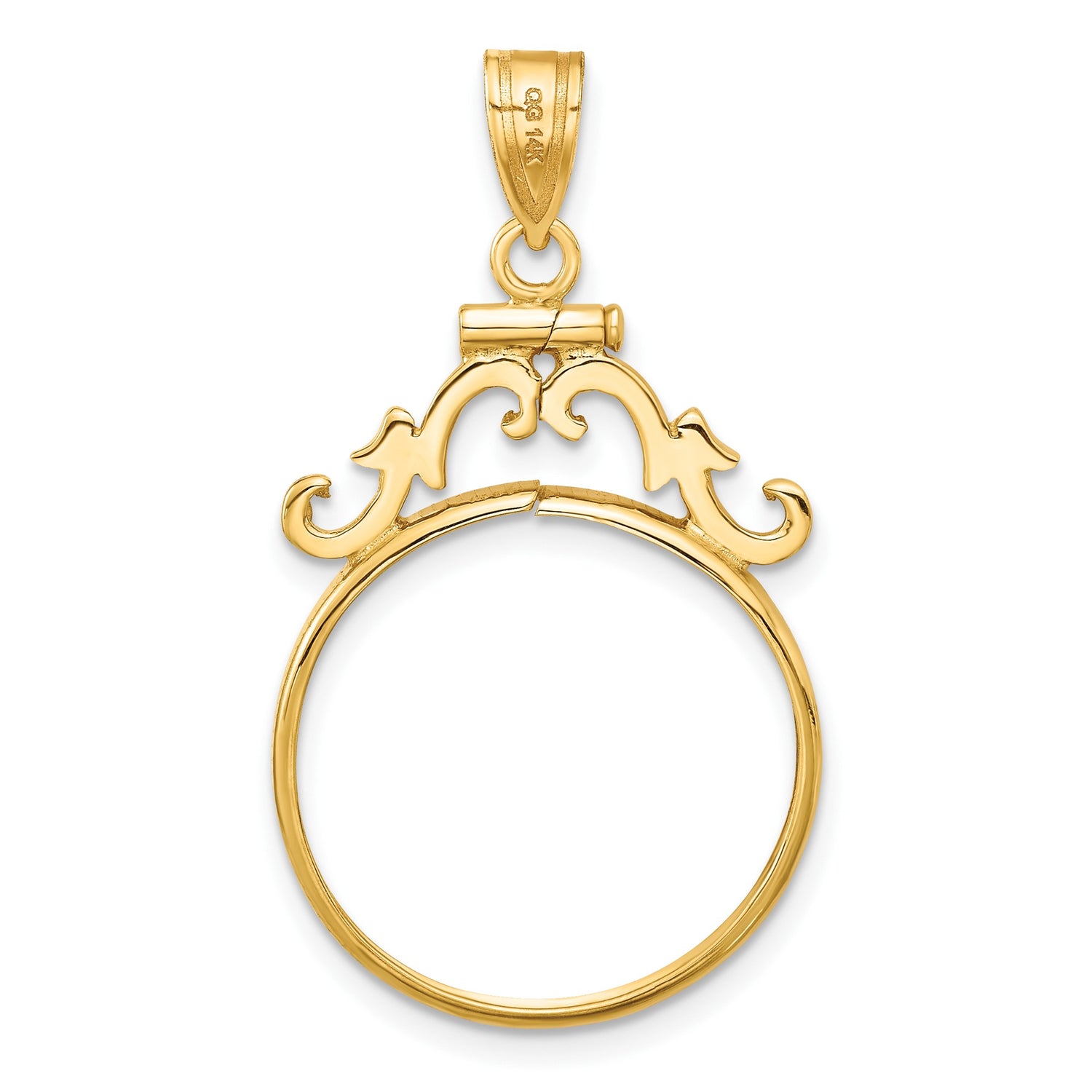 20.1 mm Coin Bezel Pendant Screw Top French Scroll in 14k Yellow Gold