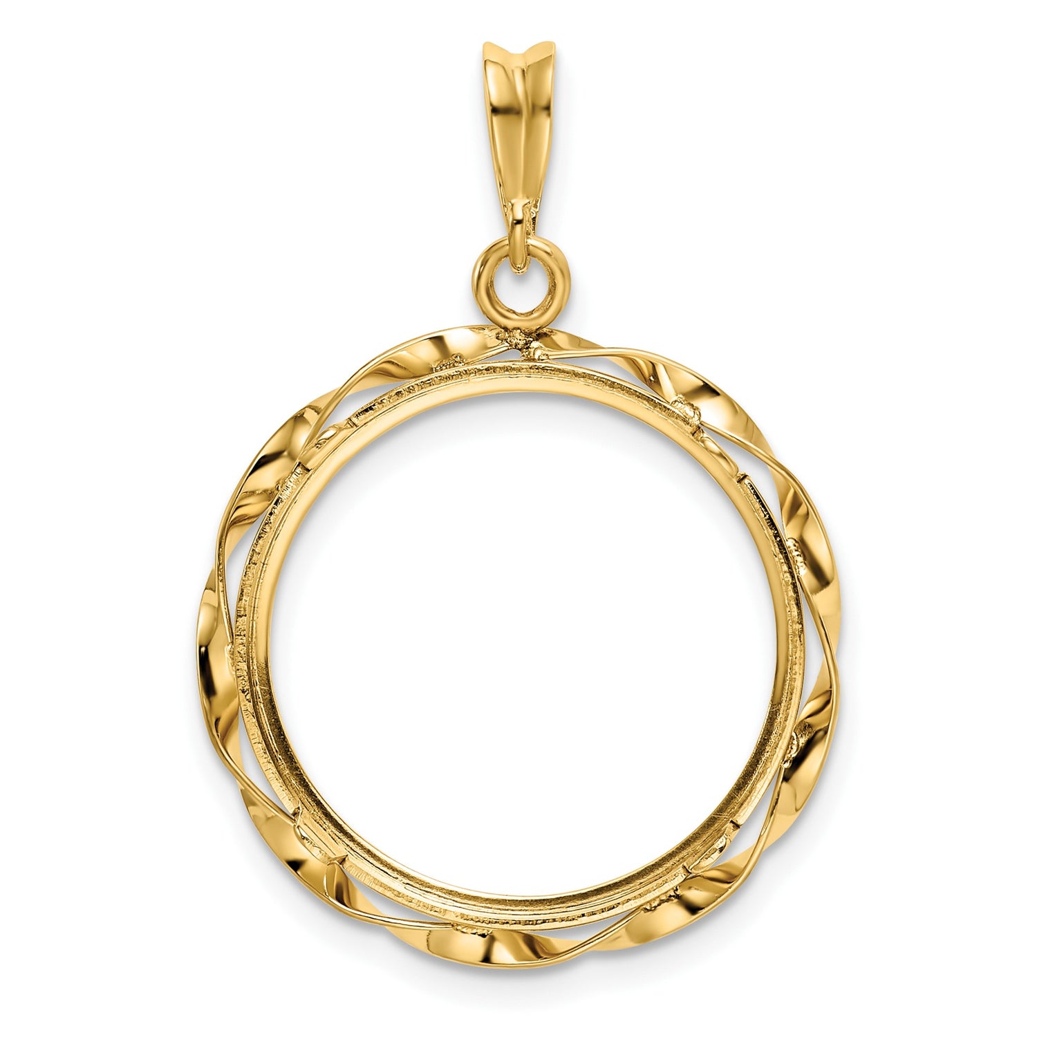 20 mm Coin Bezel Pendant Prong Set Twisted Ribbon in 14k Yellow Gold