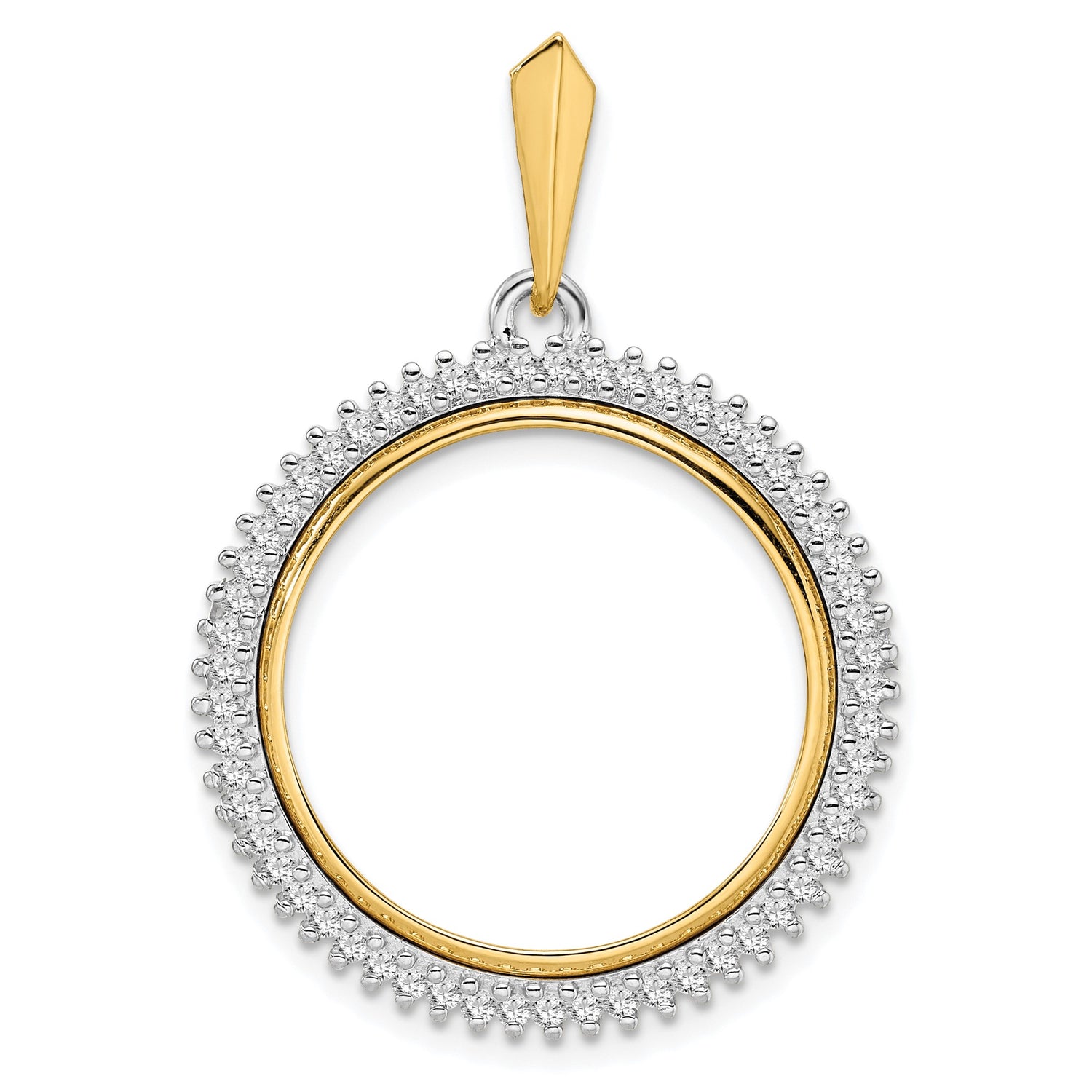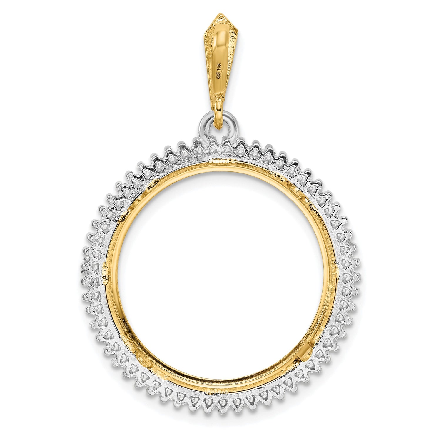 21.6 mm Coin Bezel Pendant Prong Set Diamond Border in 14k Multi-Tone Gold