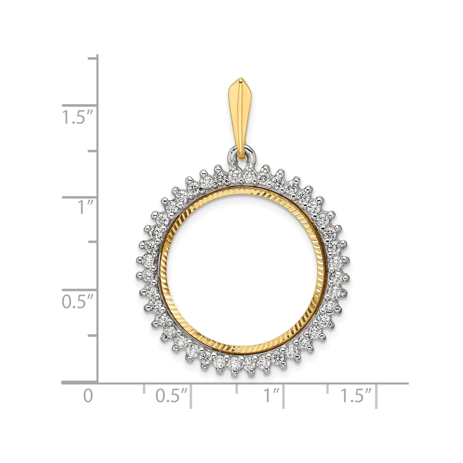 21.6 mm Coin Bezel Pendant Prong Set Diamond Circle in 14k Multi-Tone Gold