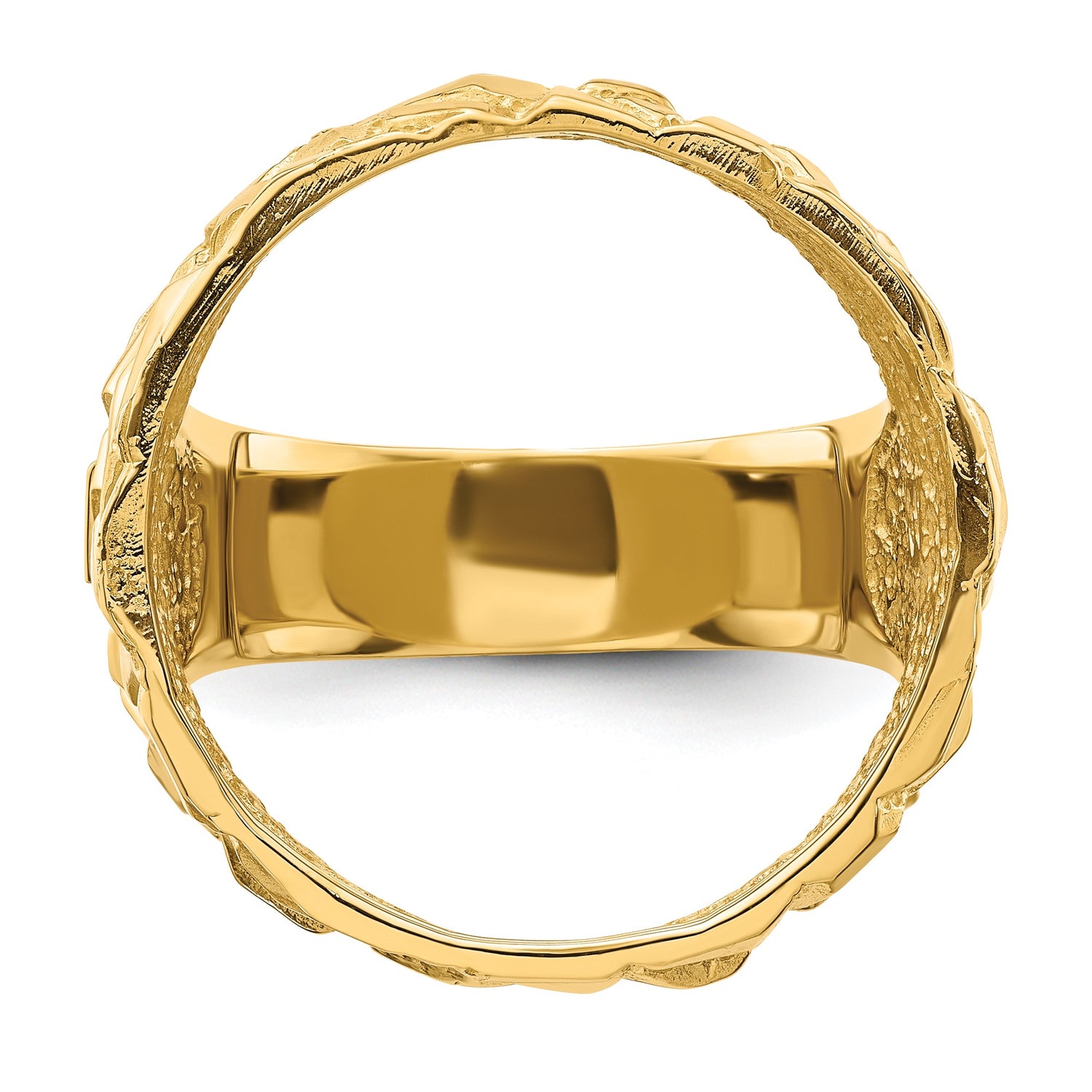 21.6 mm Coin Bezel Ring Prong Set Mens Nugget in 14k Yellow Gold