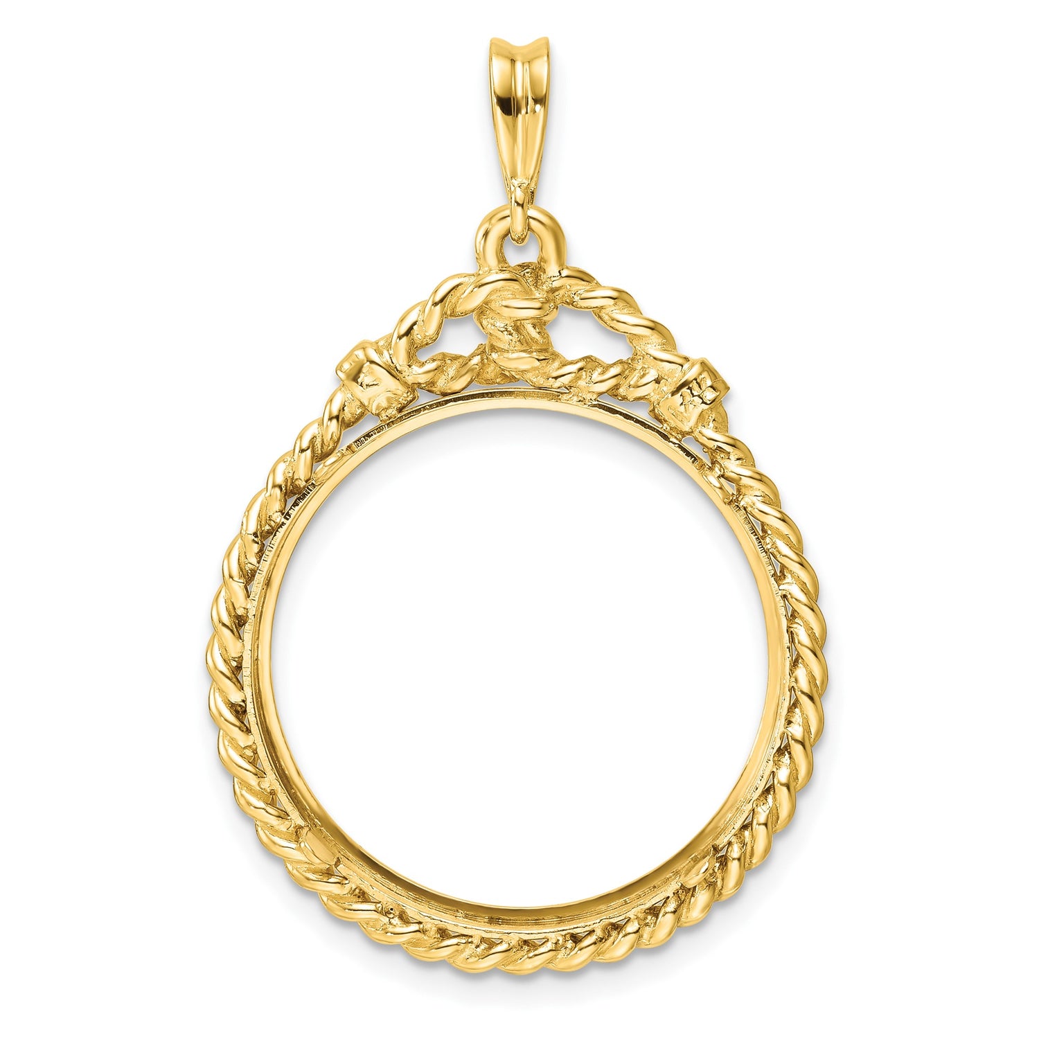 22 mm Coin Bezel Pendant Prong Set Western Rope in 14k Yellow Gold