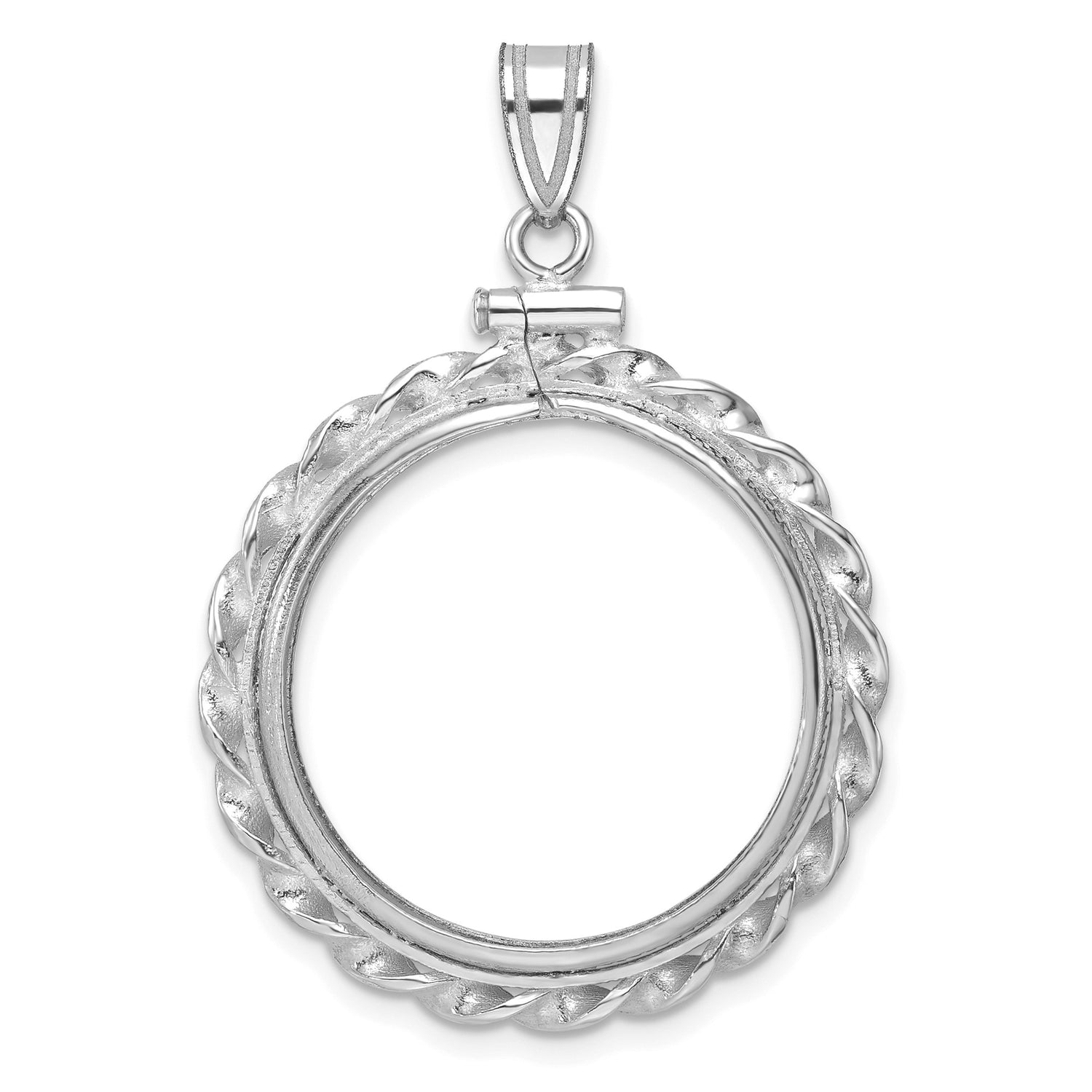 22 mm Coin Bezel Pendant Screw Top Wide Twisted Wire in 14k White Gold