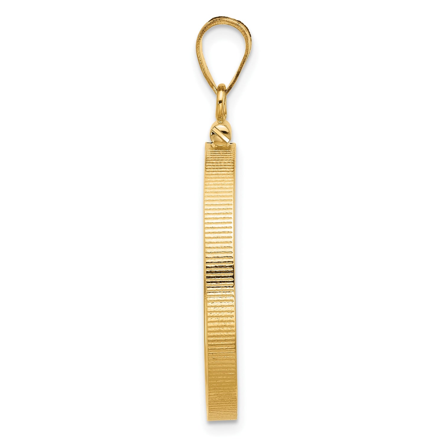 25 mm Coin Bezel Pendant Prong Set Reeded Edge in 14k Yellow Gold