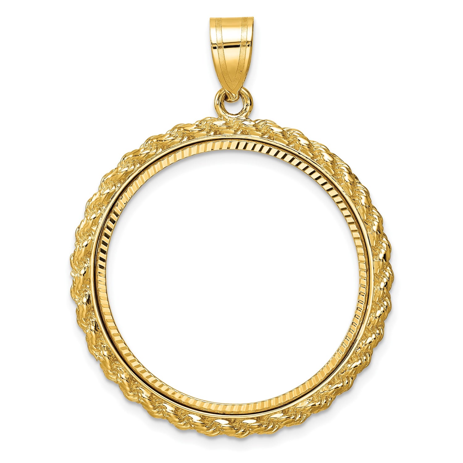 27 mm Coin Bezel Pendant Prong Set Diamond-Cut Polished Rope in 10k Yellow Gold
