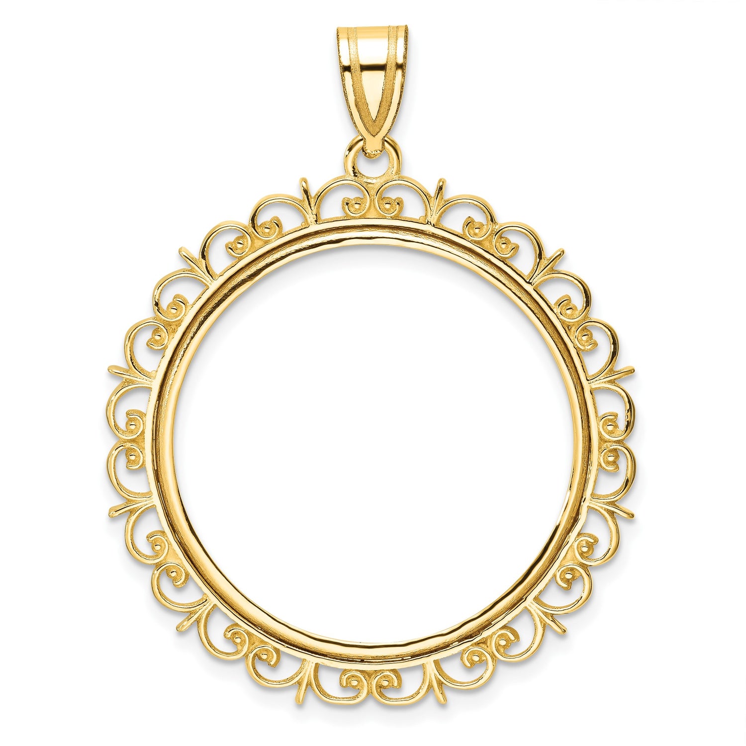27 mm Coin Bezel Pendant Prong Set Ornate Border in 14k Yellow Gold