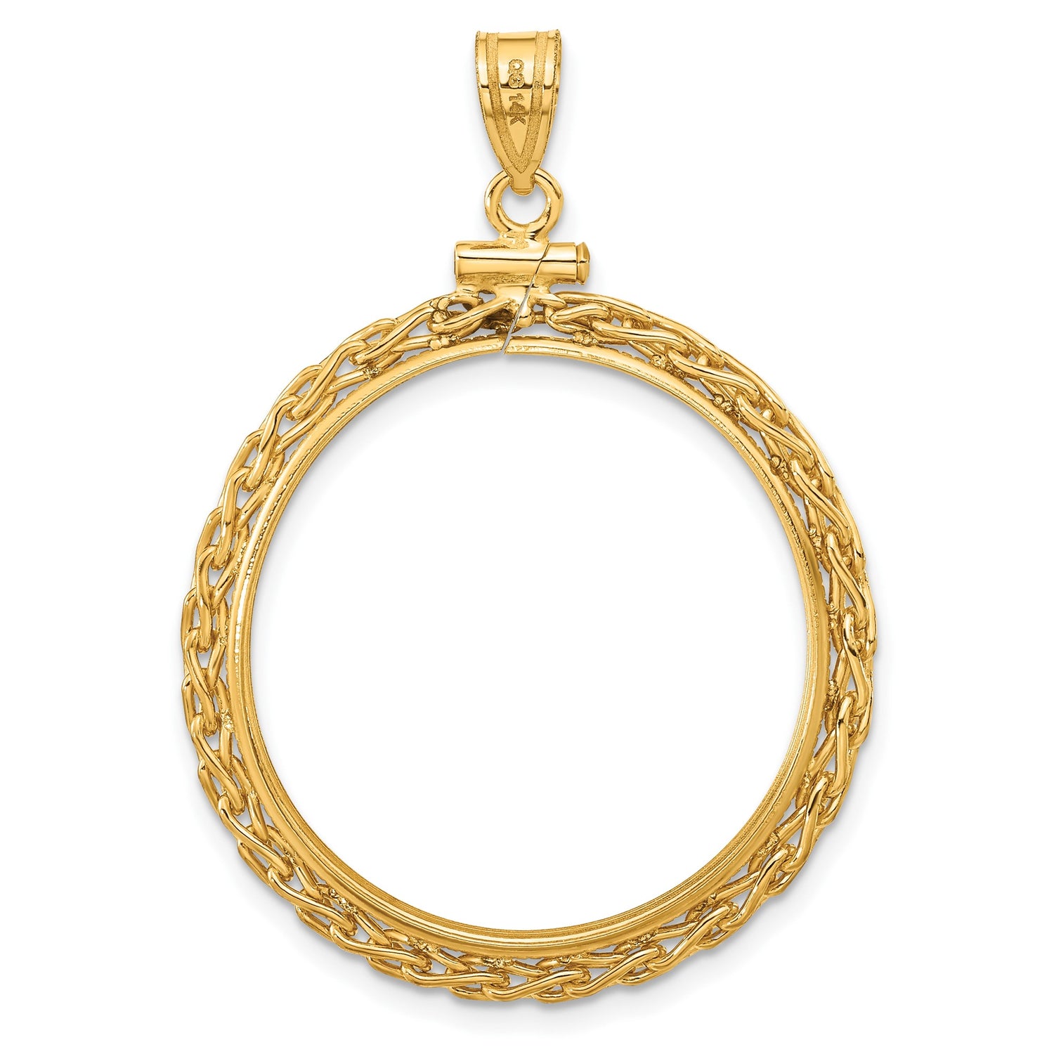 27 mm Coin Bezel Pendant Screw Top Wheat Chain in 14k Yellow Gold