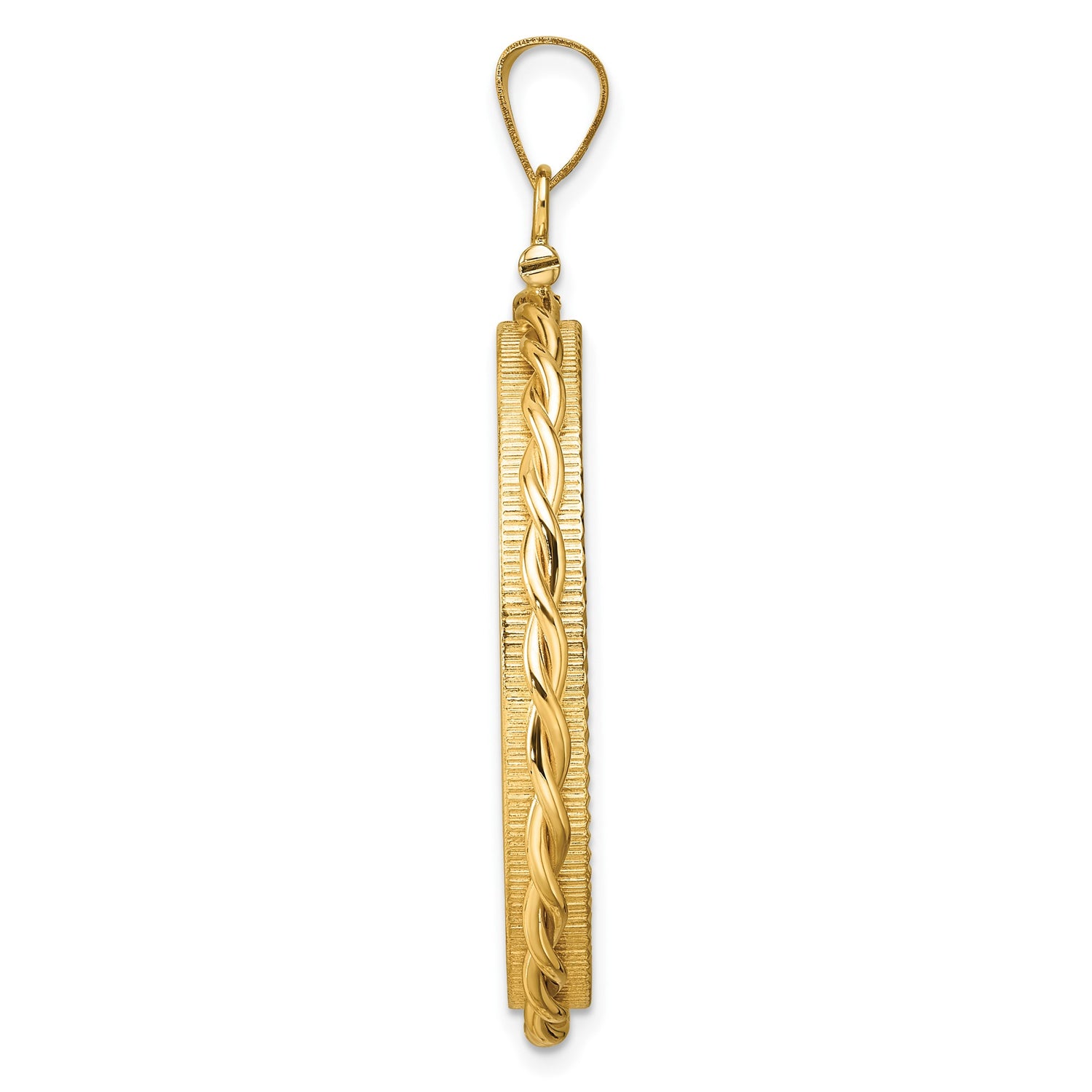 30 mm Coin Bezel Pendant Prong Set D/Cut Braided Rope Twist in 14k Yellow Gold