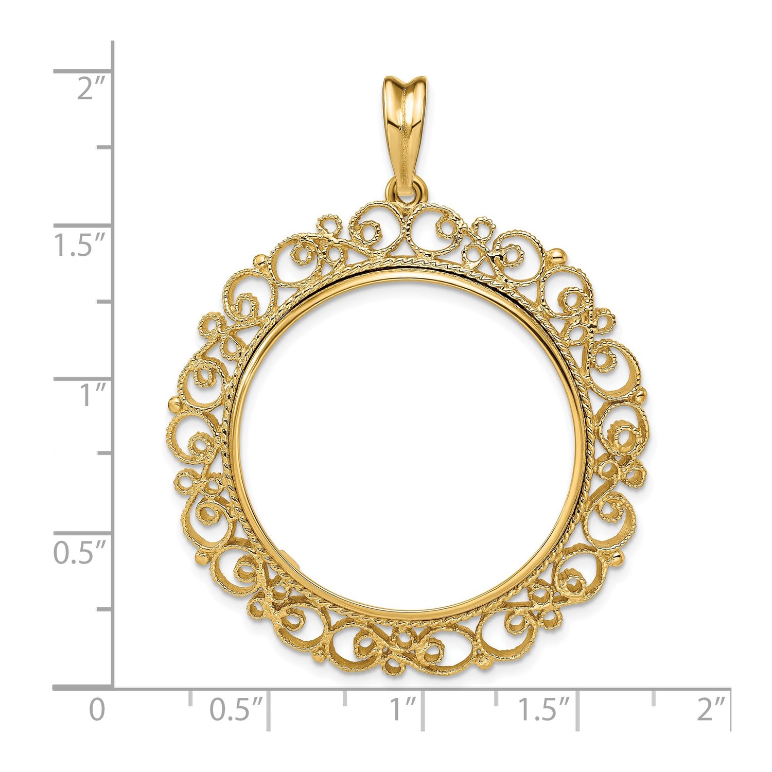 30 mm Coin Bezel Pendant Prong Set Fancy Filigree Victorian in 14k Yellow Gold