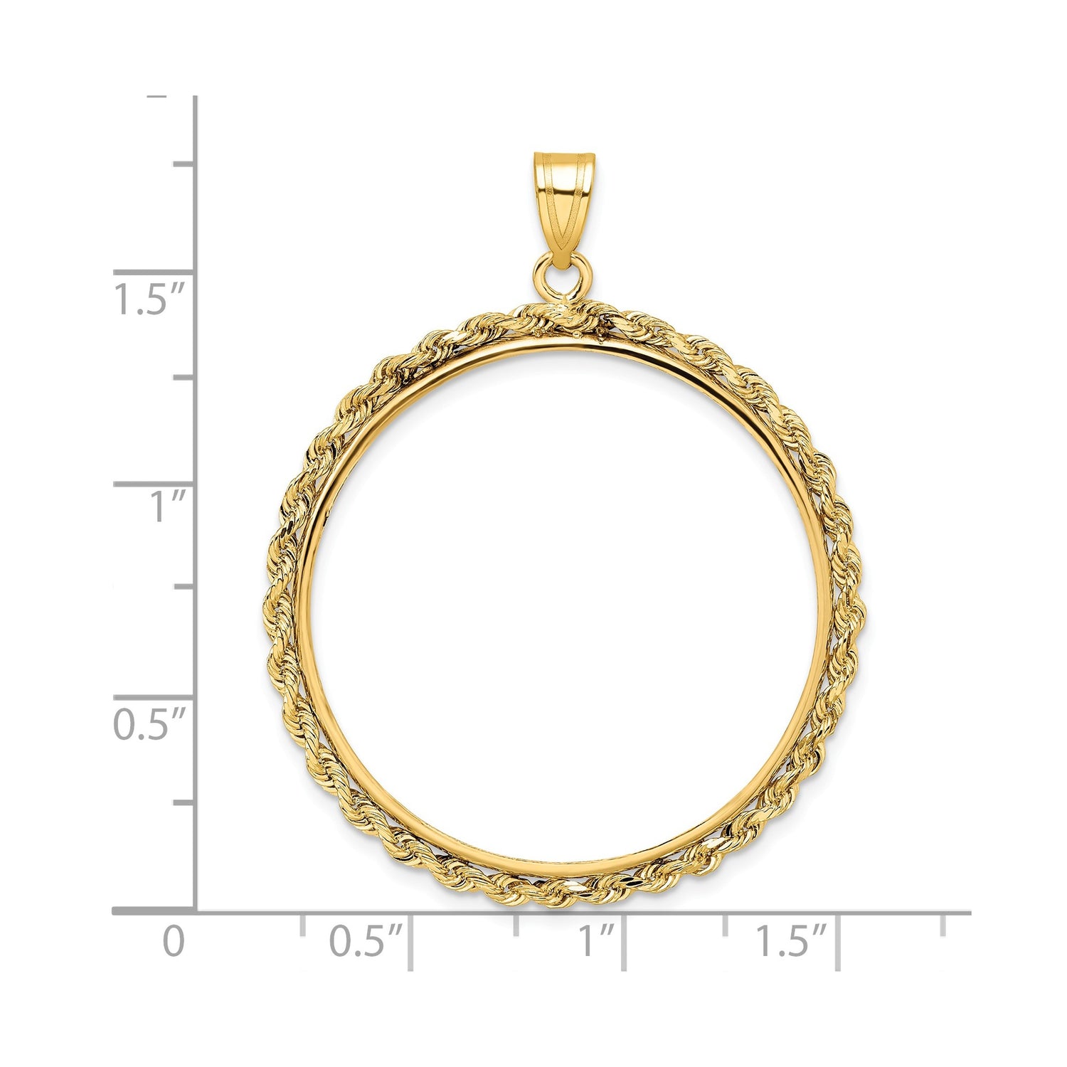 32 mm Coin Bezel Pendant Prong Set Knotted Rope in 14k Yellow Gold