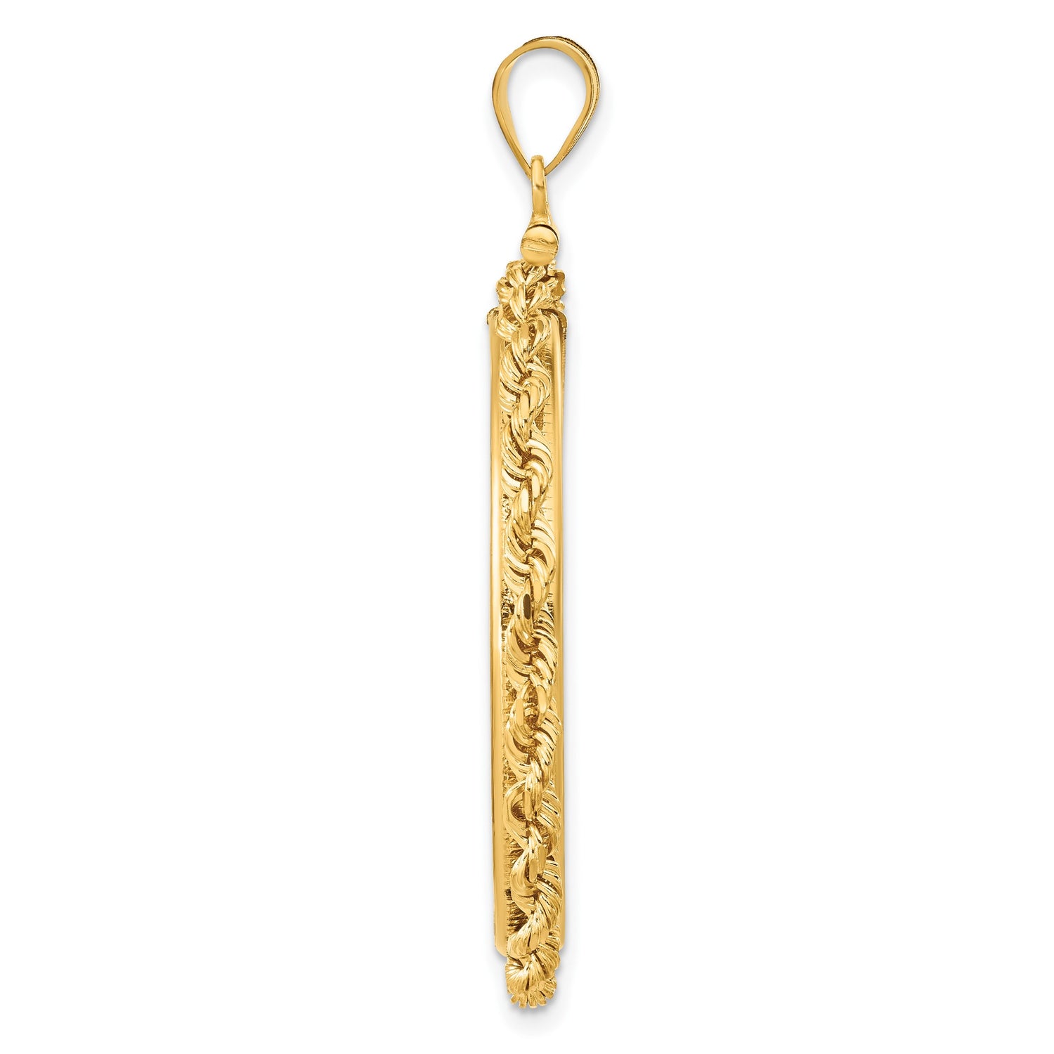 32 mm Coin Bezel Pendant Screw Top Knotted Rope in 14k Yellow Gold