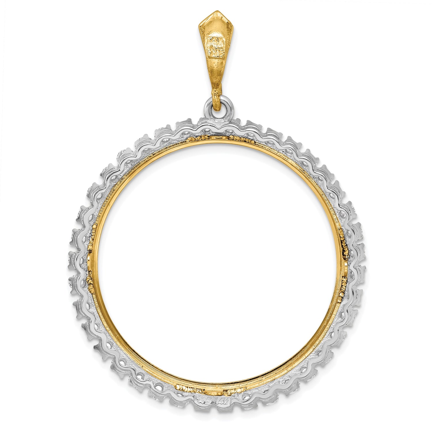 34.2 mm Coin Bezel Pendant Prong Set Diamond Border in 14k Multi-Tone Gold