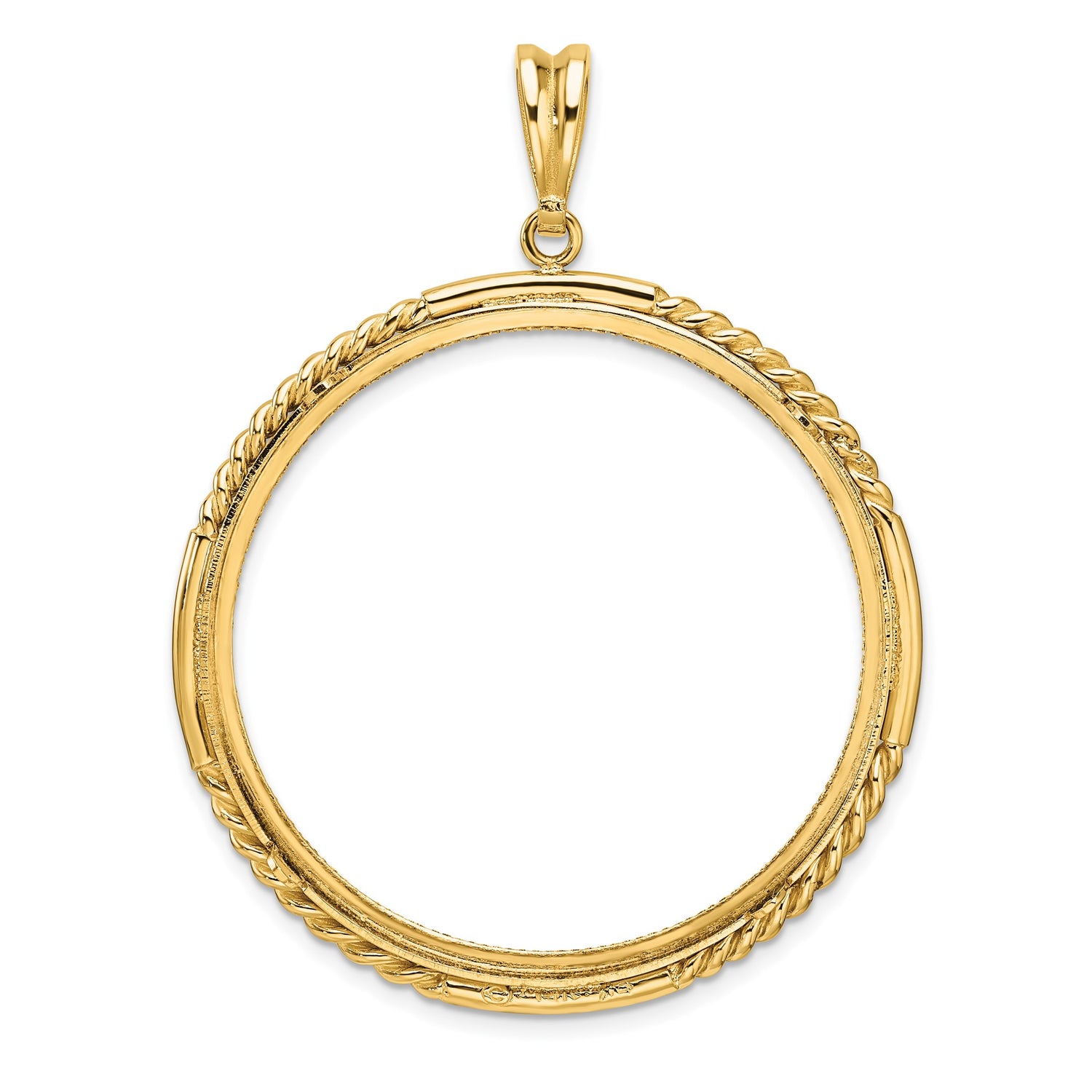 37 mm Coin Bezel Pendant Diamond-Cut Quadruple Twist Prong Set in 14k Yellow Gold