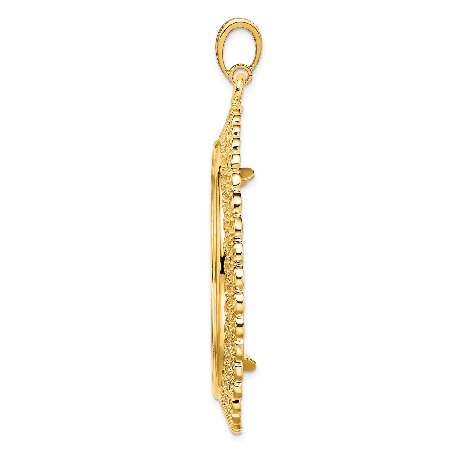 37 mm Coin Bezel Pendant Prong Set Filigree Hearts in 14k Yellow Gold