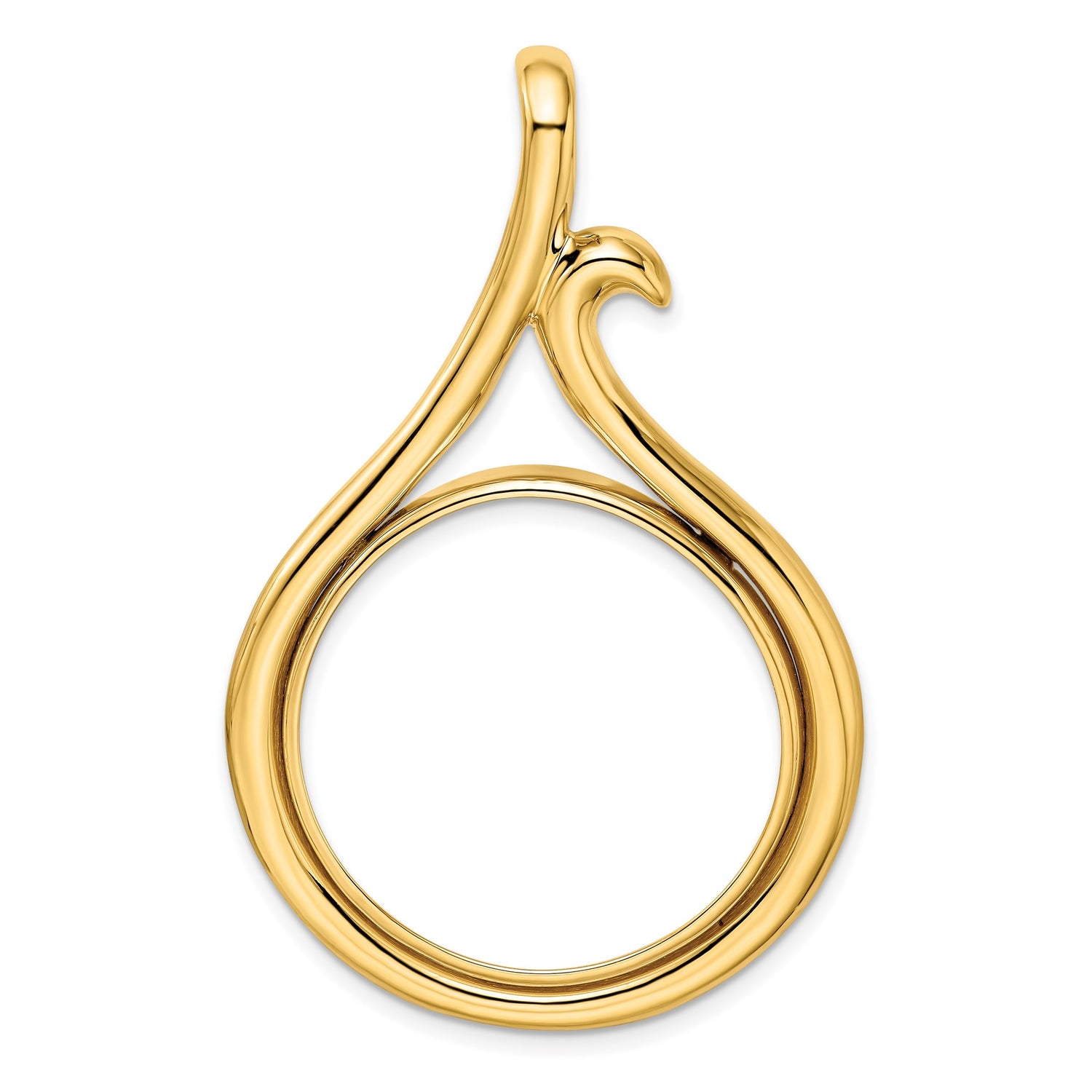 US 1/2 oz Gold American Eagle $25 Coin Bezel Pendant Prong Set Curled Teardrop in 14k Yellow Gold