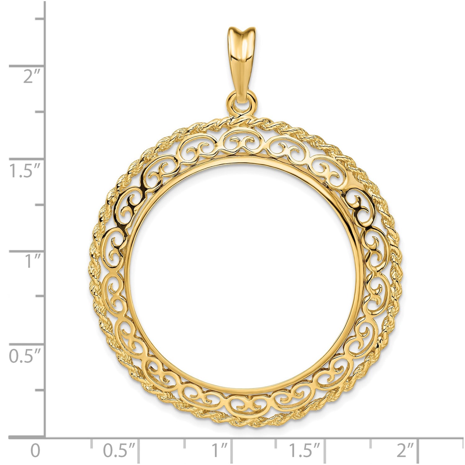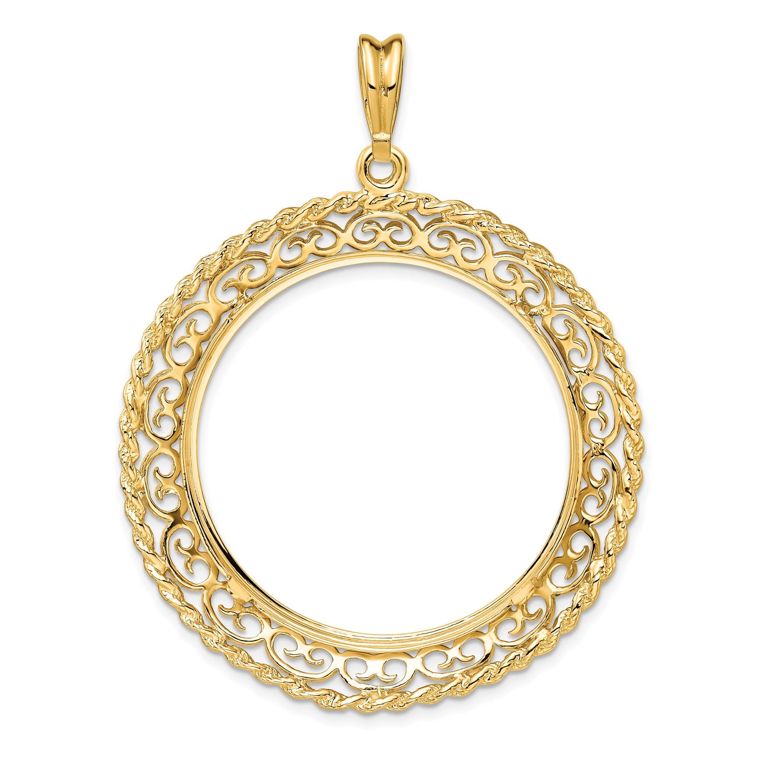 US 1 oz Gold American Eagle $50 Coin Bezel Pendant Prong Set Rope and Scroll in 14k Yellow Gold