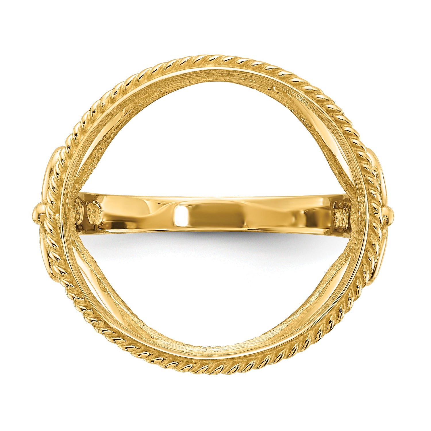 Australian 1/10 oz Gold Kangaroo $15 Coin Bezel Ring Prong Set Diamond-Cut Fancy Wire Twisted Edge in 14k Yellow Gold