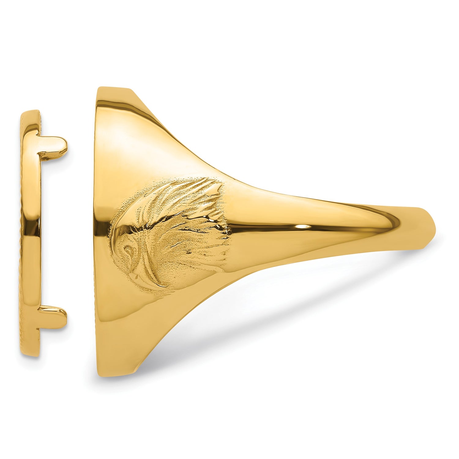 Australian 1/10 oz Gold Kangaroo $15 Coin Bezel Ring Prong Set Mens Diamond-Cut Eagle Side in 14k Yellow Gold