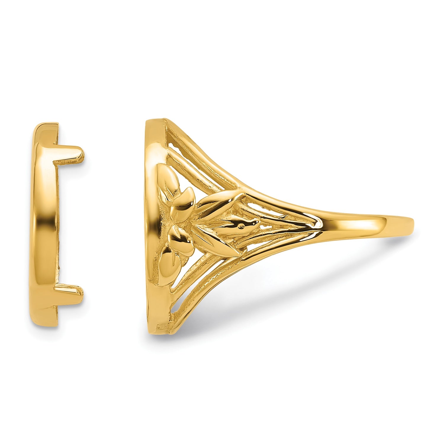 Australian 1/20 oz Gold Kangaroo $5 Coin Bezel Ring Prong Set Fancy Wire and Leaf in 14k Yellow Gold