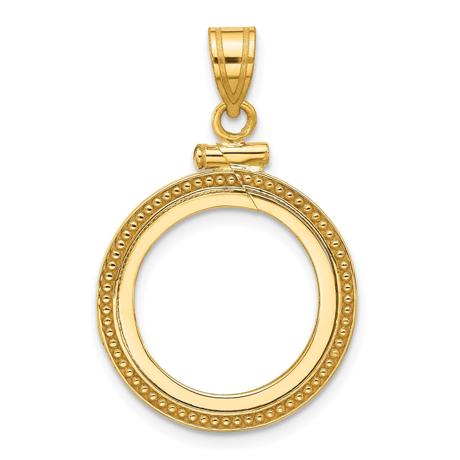 Australian 1/10 oz Gold Koala $15 Coin Bezel Pendant Screw Top Beaded Border in 14k Yellow Gold