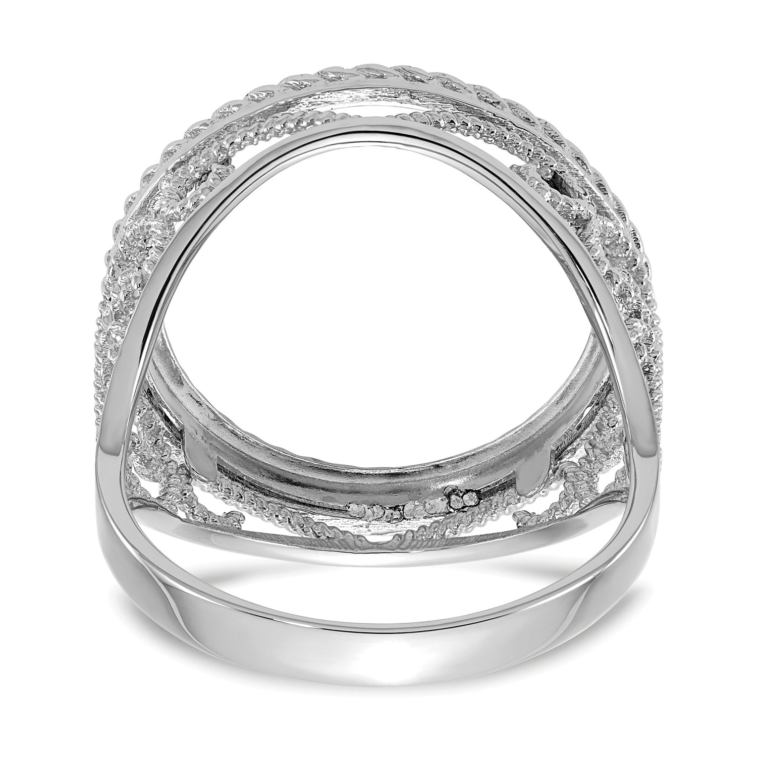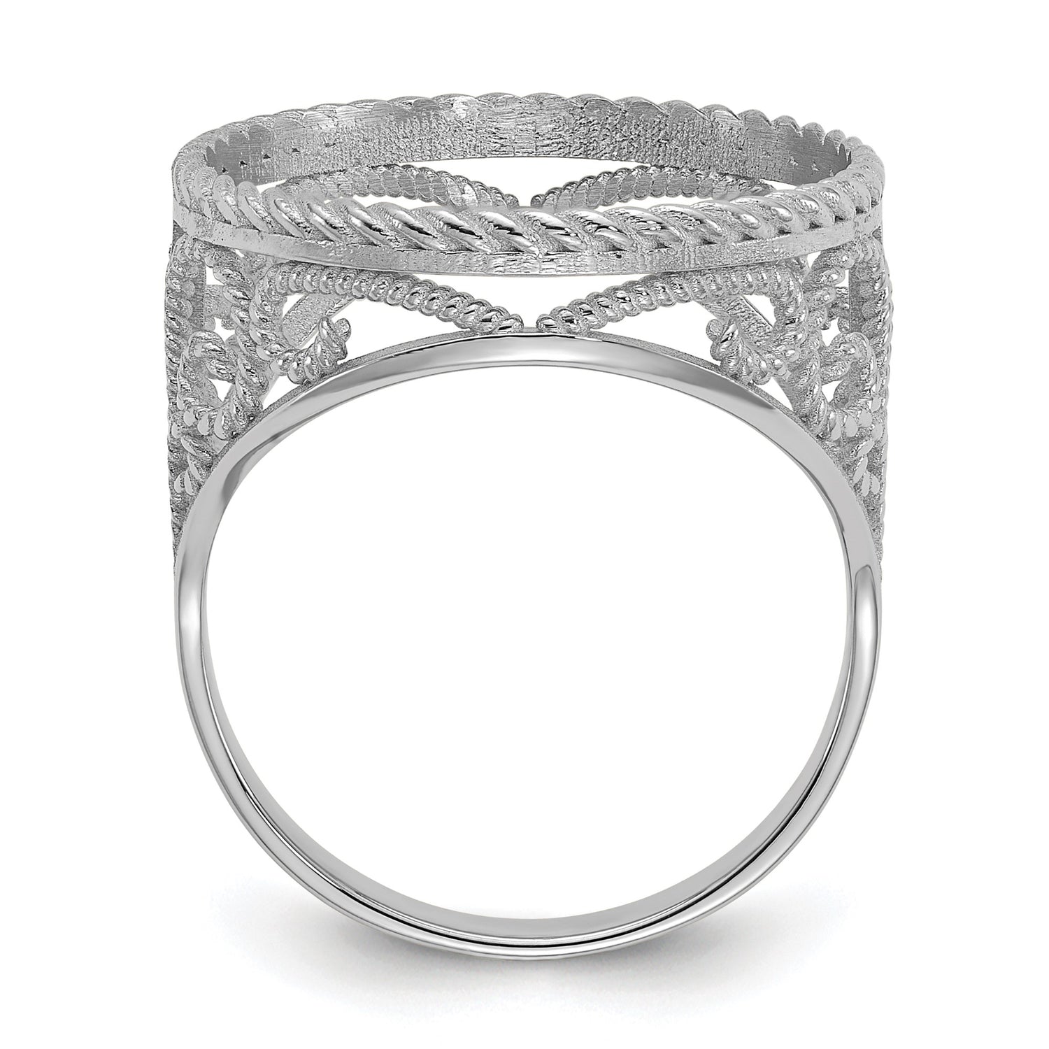 Australian 1/10 oz Gold Koala $15 Coin Bezel Ring Prong Set Diamond-Cut Twisted Wire Scroll in 14k White Gold