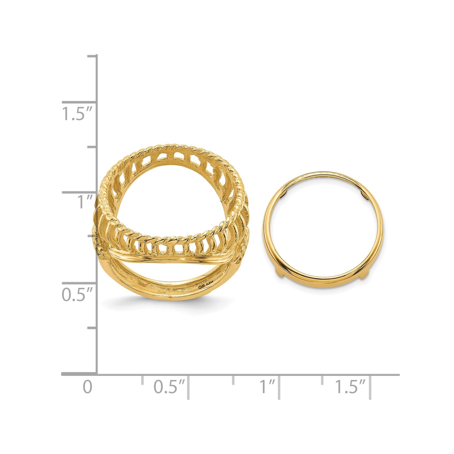 Australian 1/10 oz Gold Koala $15 Coin Bezel Ring Prong Set Wire with Twisted Rope in 14k Yellow Gold