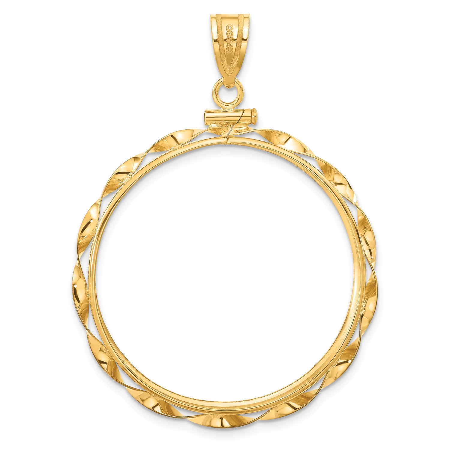 Australian 1 oz Gold Koala $100 Coin Bezel Pendant Screw Top Diamond-Cut Twisted Ribbon in 14k Yellow Gold