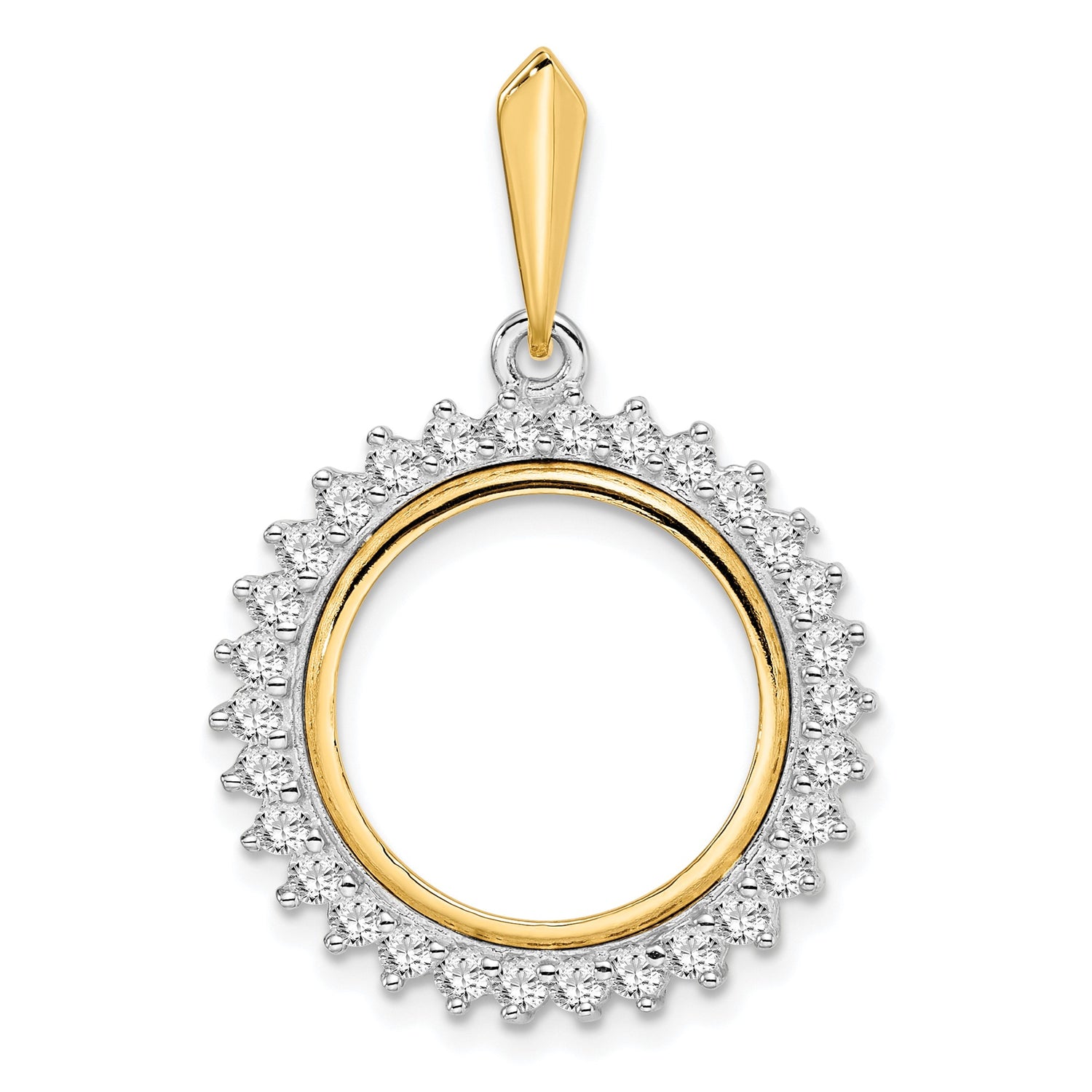 Australian 1/10 oz Gold Lunar $15 Coin Series 1 Coin Bezel Pendant Prong Set Diamond Circle Border in 14k Multi-Tone Gold