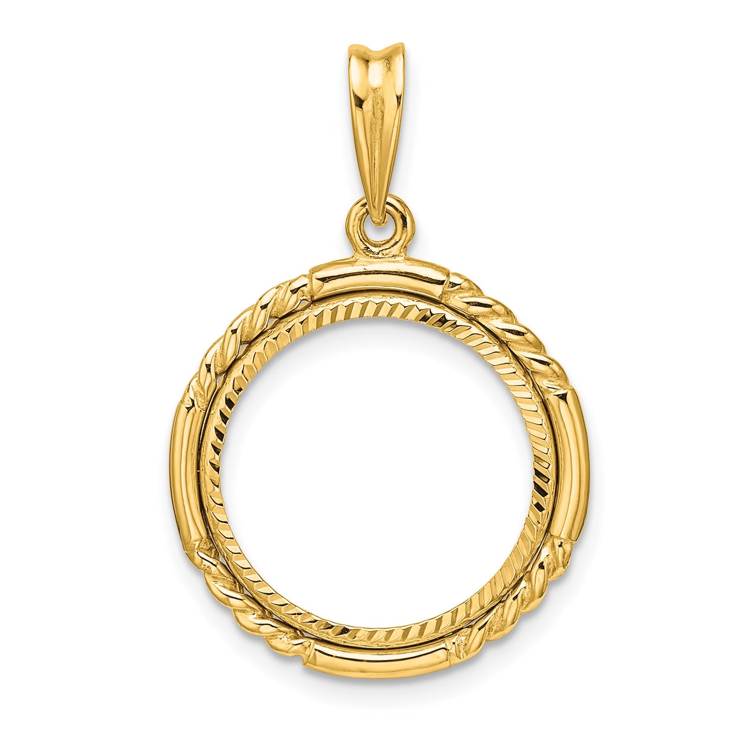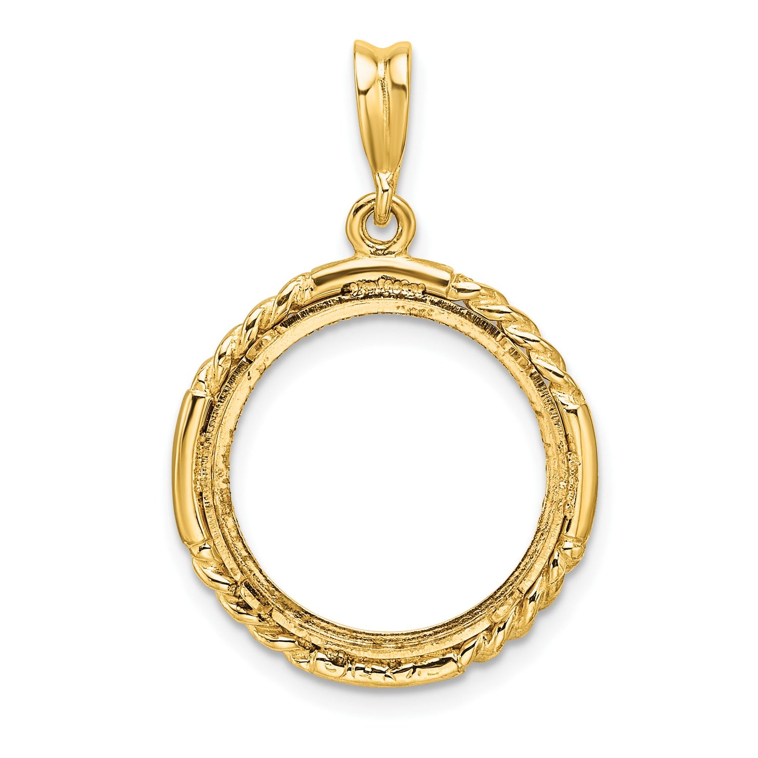 Australian 1/10 oz Gold Lunar $15 Coin Series 1 Coin Bezel Pendant Prong Set Diamond-Cut Quadruple Twist in 14k Yellow Gold