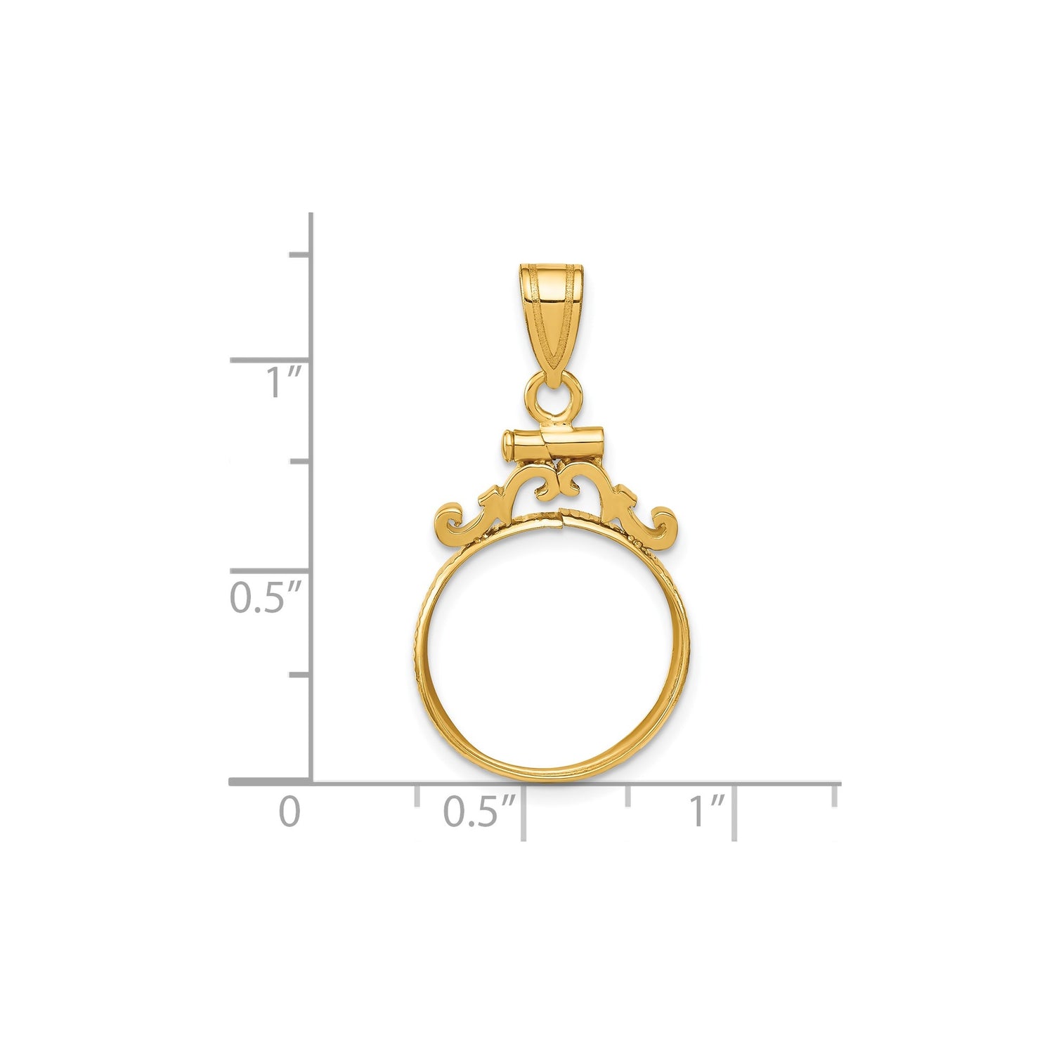 Australian 1/10 oz Gold Lunar $15 Coin Series 1 Coin Bezel Pendant Screw Top French Scroll in 14k Yellow Gold