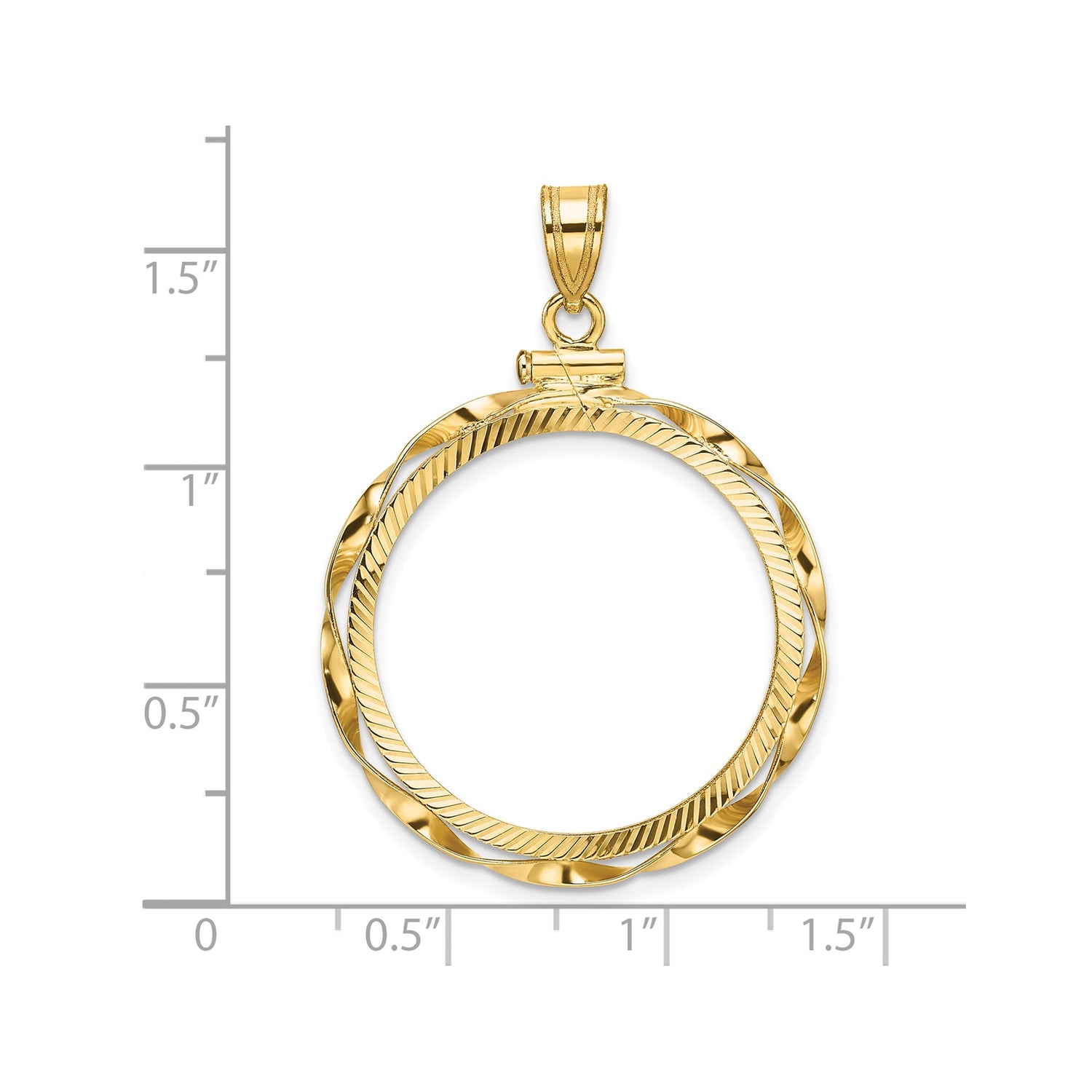 Australian 1/2 oz Gold Lunar $50 Coin Series 1 Coin Bezel Pendant Screw Top Diamond-Cut Twisted Ribbon in 14k Yellow Gold