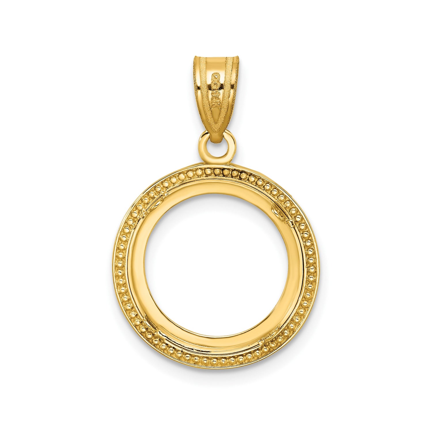 Australian 1/20 oz Gold Lunar $5 Coin Bezel Pendant Prong Set Beaded Border in 14k Yellow Gold